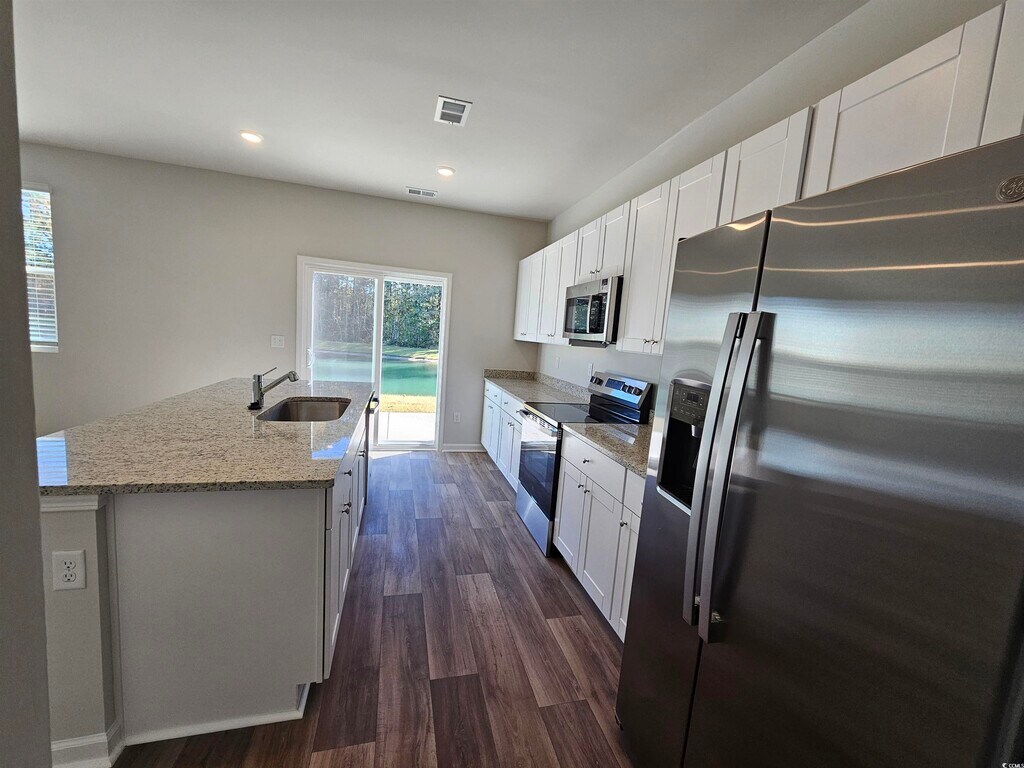 Brand new 3-bedroom,2.5-bath home with stunning lake views and high-end finishes throughout. The open-concept main level features hard surface flooring,a modern kitchen with granite countertops,stainless steel appliances,and an upgraded side-by-side refrigerator. Upstairs,the spacious owner’s suite includes a luxurious ensuite bath and generous closet space. Back patio with lake view. Additional highlights include an upgraded washer and dryer,a two-car garage,and a convenient location near shopping,dining,and parks. Pet-friendly—small dogs are welcome! Move-in ready and waiting for you to call it home. ***Ask about the savings on your first month with signed lease by December 1st,2025.***