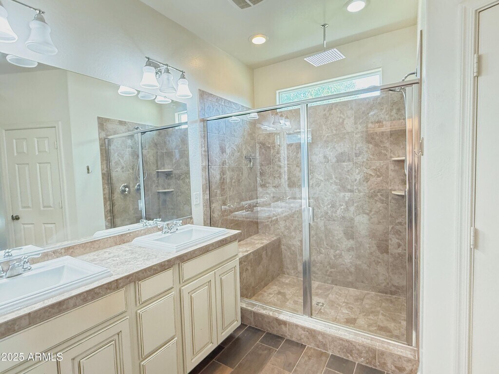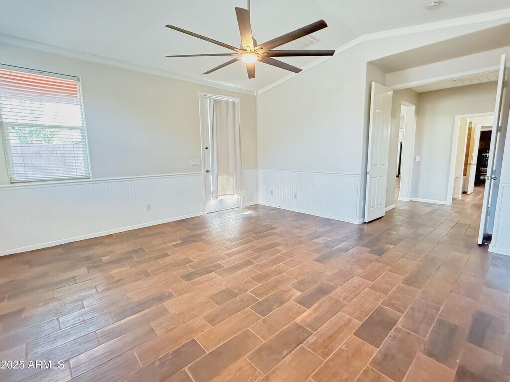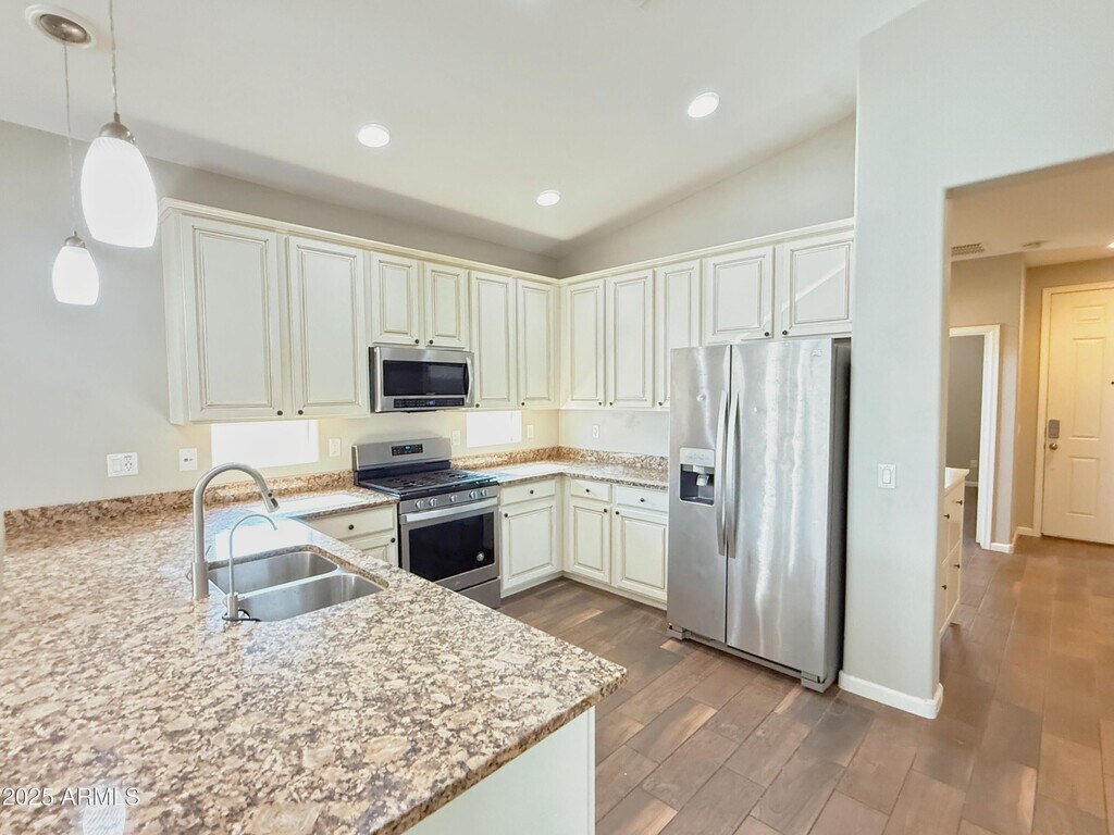 No Application Fees! Beautiful 5 bedroom,3 bathroom single level East Mesa home on a large corner lot in the desirable Desert Place at Morrison Ranch community. This home has been nicely upgraded with wood plank style tile flooring throughout with no carpeting,vaulted ceilings,two tone neutral paint,upgraded fixtures,window blinds,and ceiling fans in every room. The open living room flows into the upgraded kitchen featuring granite countertops and backsplash,upgraded cabinets with crown molding,separate pantry,gas range,and stainless-steel appliances. The spacious primary suite offers vaulted ceilings with crown molding,abundant natural light,a walk-in closet,updated dual sink vanity,tiled shower,and direct access to the backyard and patio. With three full bathrooms,this home provides plenty of functionality for larger households. Washing machine and dryer are included. The backyard is designed for both relaxation and entertaining with a covered patio,extended paver patio,synthetic grass area,mature landscaping,and an attractive corner lot layout. The front yard also features grass and mature plants for great curb appeal. Located in East Mesa near Sossaman and Elliot,this home offers convenient access to the Loop 202 Santan Freeway and US-60. Just minutes from the Morrison Ranch community parks,playgrounds,and walking trails. Nearby are shopping and dining options at Mesa Gateway and San Tan Village,as well as Phoenix-Mesa Gateway Airport and ASU Polytechnic Campus. All Denali Real Estate residents are automatically enrolled in the Resident Benefits Package (RBP) for $55.00/month which includes Renter's Liability Insurance,Credit Building to help boost the resident's credit scores with timely rent payments,up to $1M Identity Theft Protection,HVAC air filter delivery (for applicable properties),our best-in-class resident rewards program,and much more!