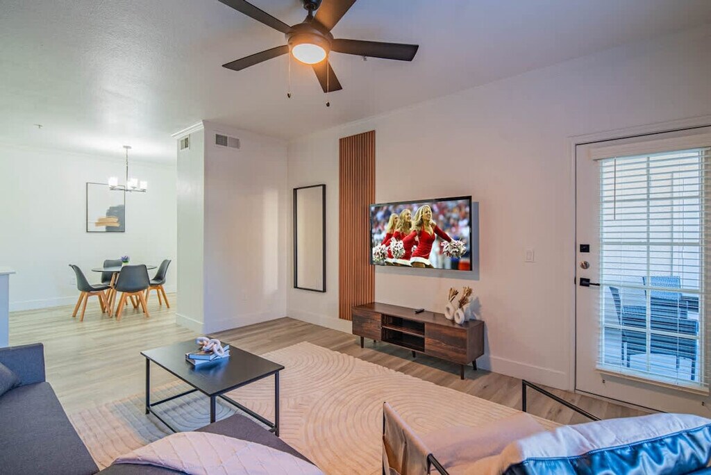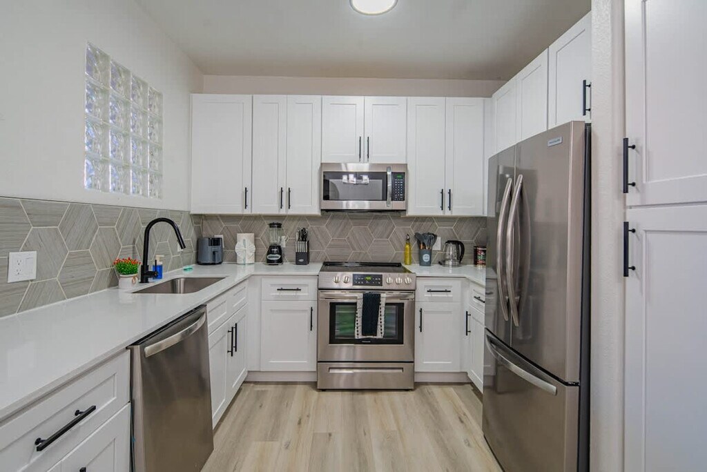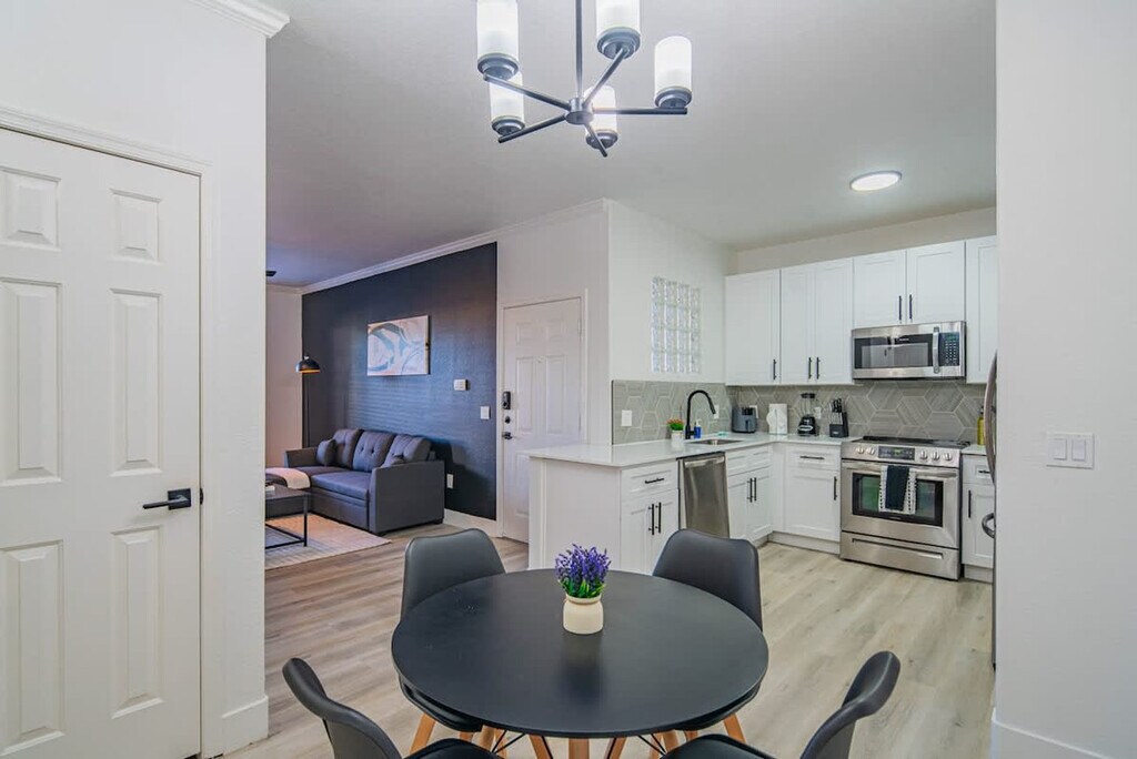 Relax and unwind in this stylish apartment located in the heart of Glendale. This vibrant area is home to numerous award-winning restaurants, shops, historic landmarks, and attractions. From this prime location, exploring Glendale and the surrounding region is easy and convenient. And when you're ready to wind down, simply retreat to the comfortable apartment to relax. Come relax in this 1-bedroom, 1-bathroom unit. The living space features an innovative open-concept design that blends the living and dining areas with the kitchen, creating a modern and sleek living experience. The living room is ideal for relaxing and enjoying the company of friends and family while watching a good movie or a show. It includes a sofa bed, a 4K 55" HDR Smart TV, and a coffee table. The fully equipped kitchen allows you to easily prepare your favorite meals and includes a microwave, stove, oven, refrigerator/freezer, toaster, coffee maker with coffee essentials, electric kettle, glasses, silverware, pots and pans, and a dining table with chairs. The bedroom features a king-size bed with pillows, linens, and sheets, an office desk and chair, and reading lamps. The inviting full bathroom is completely private and stocked with all essential toiletries. There is parking on the premises with instructions provided at check-in. Pets are allowed depending on size or if they are service animals. An additional cleaning fee is required per pet: $25 per night for 1-7 nights, $200 for 8-29 nights, and $300 for 30+ nights. There is a 2-pet maximum and only cats and dogs are allowed. If you are found to have brought pets without prior notification, there will be a $500 fee. The safety and well-being of our guests are of utmost importance. We use a thorough and extensive process of cleaning after each check-out. Noise monitors are installed in the unit to measure noise levels in decibels. If tampered with, there will be a fee. Security cameras are in the hallways for security. Guest verification is required, including providing a copy of your official government-issued photo ID, confirming your contact information, and providing a valid credit card with a name that matches your ID. You may also be required to undergo a background check if mandated by the property management company or the building. Check-in instructions might be withheld until you have successfully completed our verification portal. In the event of repeated violations, local law enforcement may be involved to ensure adherence to our policies. If it becomes necessary to remove a guest, any associated expenses will be the responsibility of the guest. [SI]