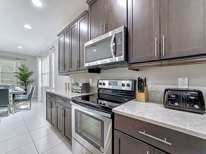 Prime Location Near Disney! Enjoy luxury living in this immaculate 8-bedroom, 6.5-bath vacation rental located in the exclusive Encore Resort at Reunion, just minutes from Disney World. This spacious home features an open floor plan, a main-level primary suite, an additional downstairs bedroom, and an upstairs loft with a game and media area. The home is professionally decorated with high-end designer furniture and comes fully furnished, offering a polished, upscale atmosphere throughout. Premium finishes include granite countertops, stainless steel appliances, a laundry room, and a private heated pool and spa. Guests have full access to Encore’s resort-style amenities, including a water park, multiple pools, fitness center, sports courts, and shuttle service to the theme parks and airport. Perfect for families and groups seeking a stylish, turn-key luxury rental near all the action. Contact us to schedule a showing.