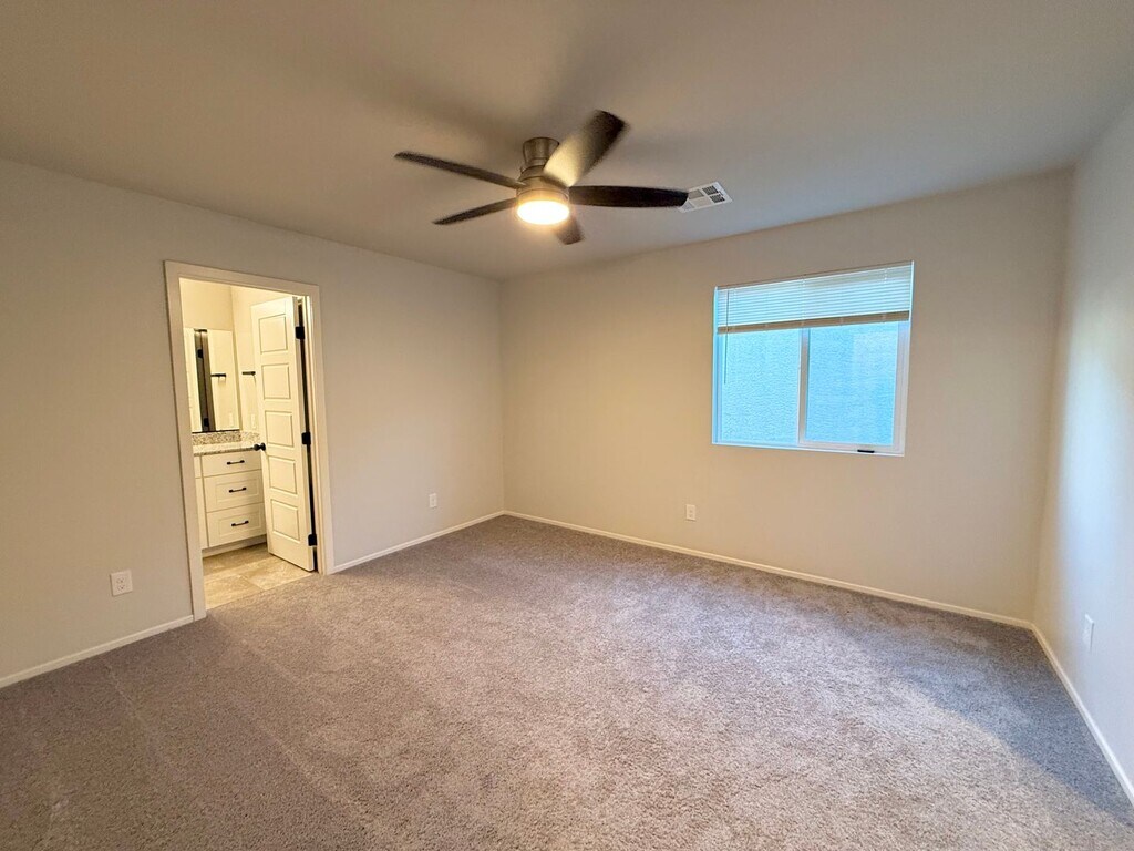 Built in 2021, this low-maintenance 4-bedroom home is nestled in a gorgeous community and offers 3 bathrooms, two separate 1-car garages, and a private, easy-care patio. The thoughtfully designed open-concept floor plan creates a seamless flow throughout the home while maintaining timeless charm. The gourmet kitchen features quartz countertops, stainless steel appliances, and connects perfectly to both the family and dining areas. A large laundry room adds extra convenience, and the home includes a downstairs bedroom with a nearby full bathroom—ideal for guests or multigenerational living. Every bedroom includes a generous walk in closet! Fresh new paint gives the home a clean, updated feel. Enjoy premier community amenities including Galaxy Park, a community pool and spa, and BBQ areas close by. With easy access to additional parks, scenic walking trails, dining, shopping, and entertainment, this home is a must-see for those seeking a vibrant and active lifestyle. GO TO TO APPLY ONLINE AND FOR VIEWING THE PROPERTY BY CLICKING ON THE LISTING CALL FOR MORE INFO MONTHLY CHARGES $2375 RENT $55.95 RESIDENT BENEFITS PACKAGE INCLUDES INSURANCE TOTAL MONTHLY CHARGES $2430.95 ONE TIME CHARGES $400 ADMIN FEE (NON-REFUNDABLE) $500 PET FEE PER PET (NON-REFUNDABLE) NO SMOKING ALLOWED