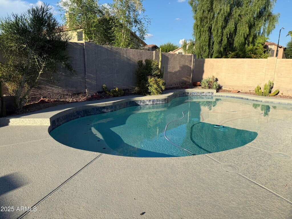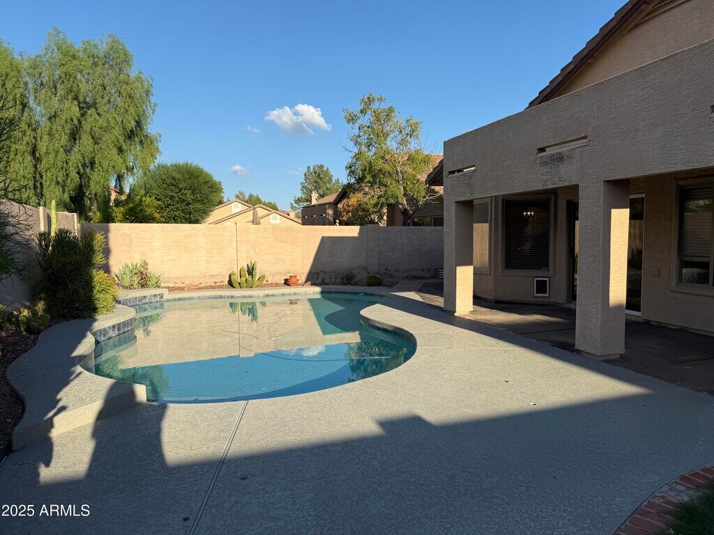 Exceptional 4 bed,2 bath single-level home w/ a pool! Enter through the charming courtyard entrance to a spacious interior filled w/ upgrades. The floorplan boasts a combined formal living & dining room w/ vaulted ceilings. An open great room w/ enough space for fun gatherings. A fully functional eat-in kitchen features granite counters & backsplash,breakfast bar & matching appliances. The primary suite has vaulted ceilings,walk-in closet & bathroom w/ 2 sinks,separate shower & tub. Bedrooms 3 & 4 are off the bonus room w/ a large walk-through bathroom. The backyard offers a sparkling pool,covered patio & grass. Tenant occupied,but easy to show.