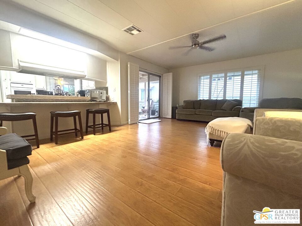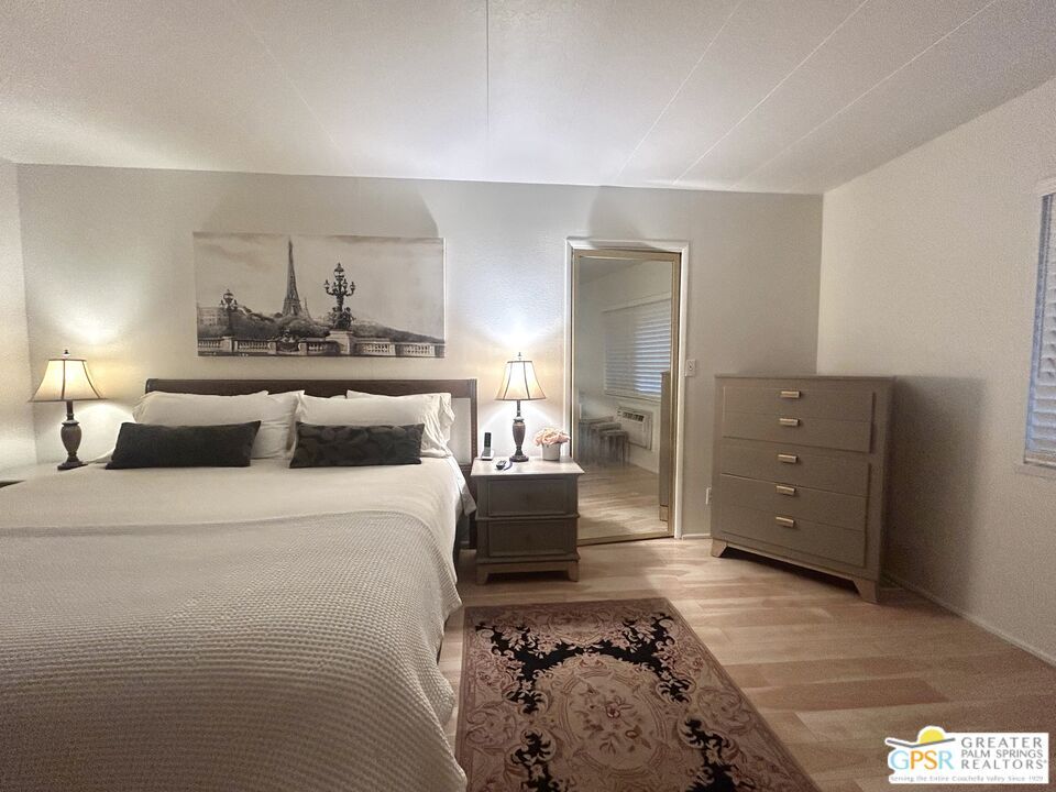 Welcome to your charming desert retreat in Portola Country Club! This bright and spacious approx. 1,734 sq. ft. manufactured home offers 2 bedrooms, 2 baths, plus a bonus room/office, filled with natural light, large picture windows, and plantation shutters throughout. The home features a mix of hardwood floors and carpet in the front living room. The fully equipped kitchen includes everything you need to entertain, with a Viking dishwasher, oven range, microwave, toaster oven, blender for morning smoothies, and all essential appliances. The primary suite features dual sinks, a sunken soaking tub, separate shower, and walk-in closet. Additional highlights include an in-home washer and dryer, a two-car covered carport, and a covered side patio perfect for lounging or entertaining. Available furnished or partially furnished with a 6-month to 1-year minimum lease and $2,500 security deposit. Cable, internet, trash, and gardener are included, while tenant pays gas, water, and electricity. Optional golf cart rental available for an additional $400 per month added to the monthly rent. Tenants enjoy full access to the amenities at Portola Country Club, including complimentary golf for two on the 18-hole par-3 course with a one-year lease. The community also features three pools and hotubs, pickleball and tennis courts, bocce ball, a remodeled clubhouse, fitness center, surrounding mountain views, and a secure enclosed dog run park perfect for pets to play and exercise safely. Conveniently located near El Paseo Shopping District and Living Desert Zoo and Gardens. An Affordable Desert Getaway!" MLS# 26672117PS