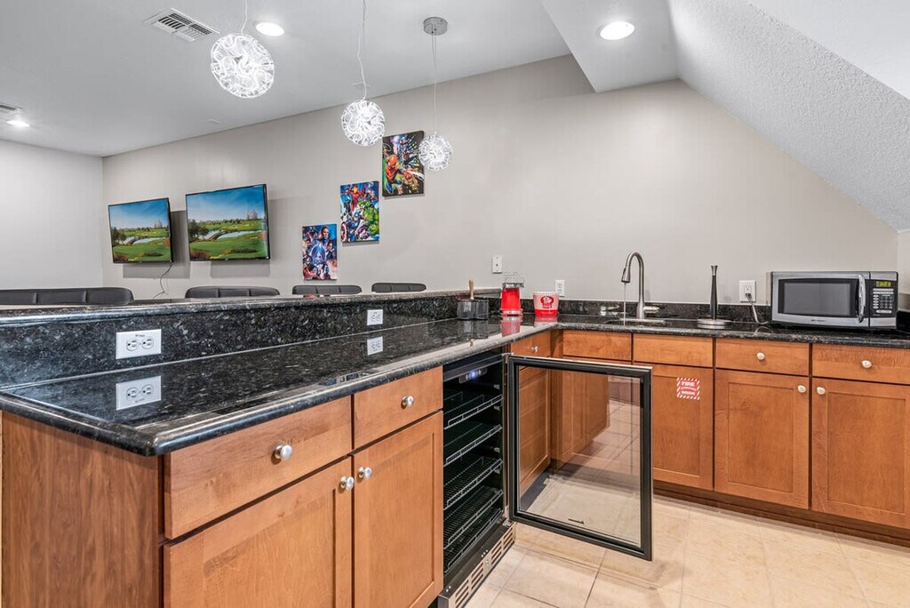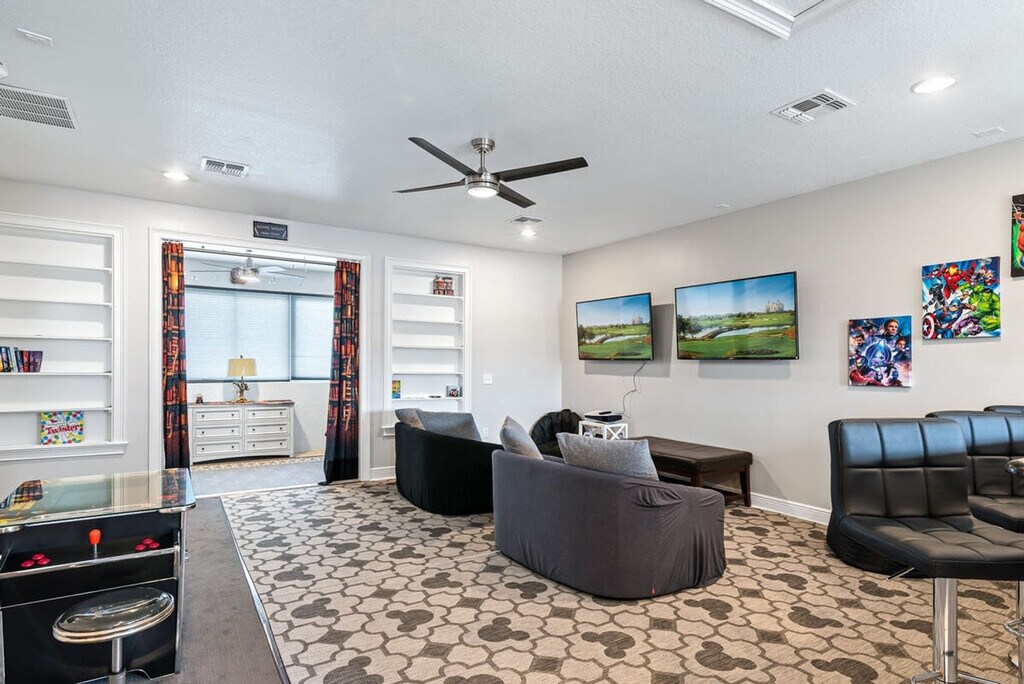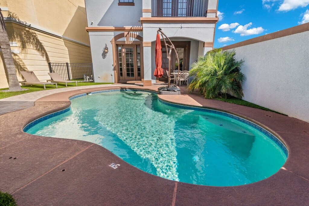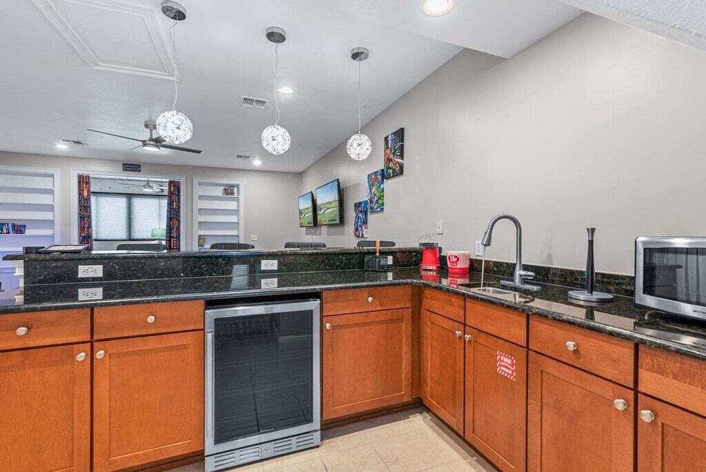 Welcome to this stunning 5-bedroom home nestled in the prestigious Reunion Resort, where comfort meets convenience. Located in Kissimmee, close to Orlando's most sought-after attractions, including Walt Disney World, Universal Studios, and SeaWorld, this property is the perfect base for your family adventure. With its central location, you'll have easy access to all the excitement that Orlando has to offer while enjoying a tranquil retreat at the end of the day. This beautifully appointed home features a private pool, a PS5 for gaming enthusiasts, and multiple inviting gathering areas, including a built-in bar, making it an ideal spot for creating unforgettable memories with loved ones. The fully equipped kitchen is perfect for family meals, and the master bedroom with a king-size bed and attached bathroom offers a luxurious retreat. Three queen bedrooms on the second floor and bunk beds on the third floor provide ample space for additional guests. Enjoy access to resort amenities, including multiple pools and a fitness center, with additional activities like tennis and mini-golf available for purchase. Our pool heat fee is $45 per day, and a minimum of two days' notice is needed to request pool heat before your arrival. Additional activities like tennis and mini-golf are available for purchase. Our grill is available for a one-time fee rental which includes one propane tank. Reunion Resort is a vibrant community that serves as your gateway to an unforgettable Orlando experience. Nestled in Kissimmee, this resort is conveniently located near popular attractions, including Walt Disney World, Universal Studios, and SeaWorld. Beyond the thrill of theme parks, the neighborhood offers world-class golf courses designed by legends like Jack Nicklaus and Arnold Palmer, as well as a refreshing water park. Dining options range from casual bites to fine dining experiences, and the community features several resort pools and a state-of-the-art fitness center. Quiet hours are between 10:00 pm and 7:00 am. Only guests 25 years or older are allowed unless accompanied by a responsible adult. No parties or events are permitted, and only registered guests can stay overnight. Vehicles parked in violation of the parking rules are subject to immediate towing. Charcoal grills are strictly prohibited, and discovery of usage may lead to a financial fine of up to $500 and eviction from the home. Our pool and spa heating system relies on heat exchange technology and may not function optimally in extremely cold weather conditions. Please allow at least 24 hours for the pool to reach your desired temperature. While the use of the pool and spa is complimentary, activating the heating system will incur an additional fee of $45 per night, with a minimum three-night charge. The temperature of the spillover spa can fluctuate between 80°F and 100°F depending on outdoor conditions. Our pool heating system is equipped with a safety mechanism that automatically shuts off the pump in extreme cold weather to prevent damage, which may result in temporary interruptions to the heating service. Our friendly communications team is always ready to assist you with any needs or questions. We are here to ensure your stay is as comfortable and enjoyable as possible. Feel free to reach out to us at any time. [SI]