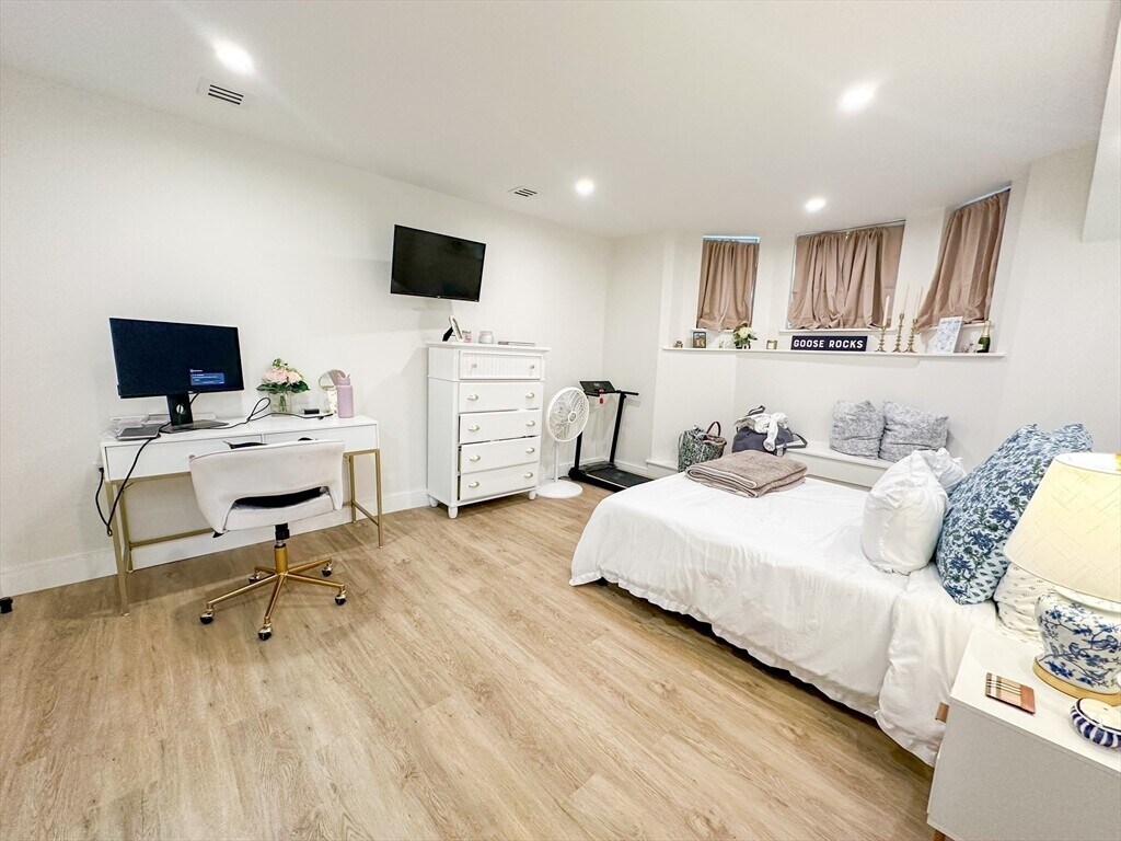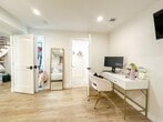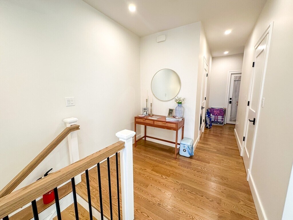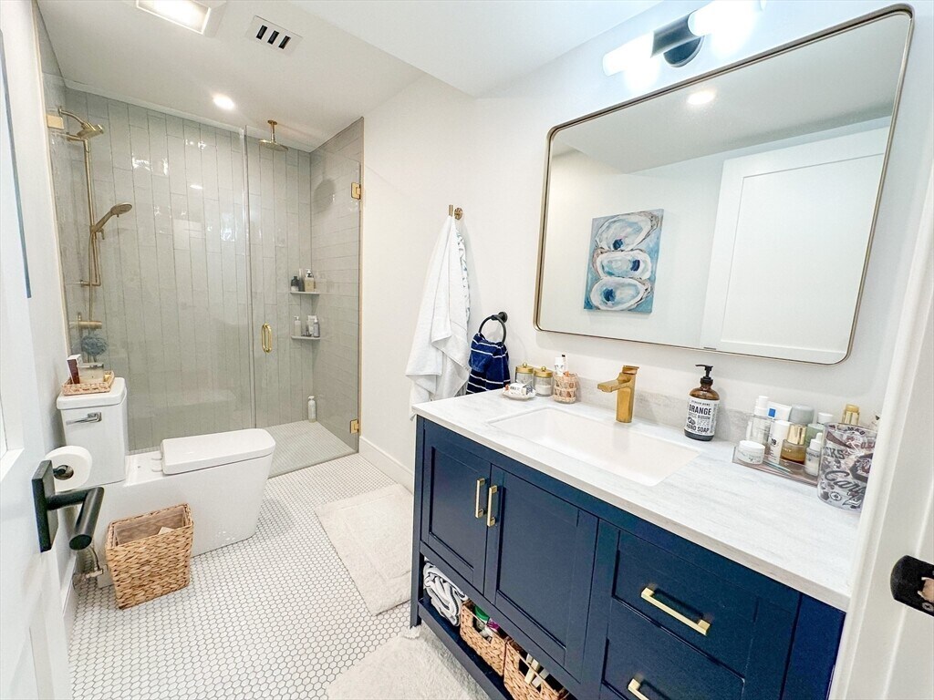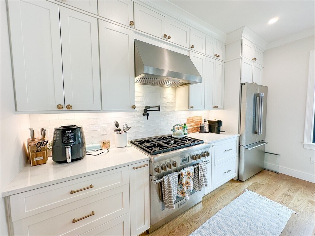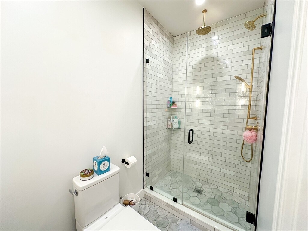 Stunning 3 bed 3 bath with central air,in-unit laundry,gorgeous kitchen and more! Be greeted by high ceilings,open concept living,hardwood floors and tons of natural light. The living room comfortably fits a large sectional and the kitchen boasts quartz counters,stainless appliances and tons of cabinets. On this floor there is one bedroom with a custom closet,one bathroom,and access to your private fenced in patio. Downstairs,enjoy extra storage,a laundry room,and two more huge bedrooms,each with it's own en-suite bathroom. Both bedrooms have plenty of room for work from home spaces and also feature custom closets. The primary suite is the largest bedroom and has two closets along with a gorgeous tiled shower in the bathroom. MLS# 73435826
