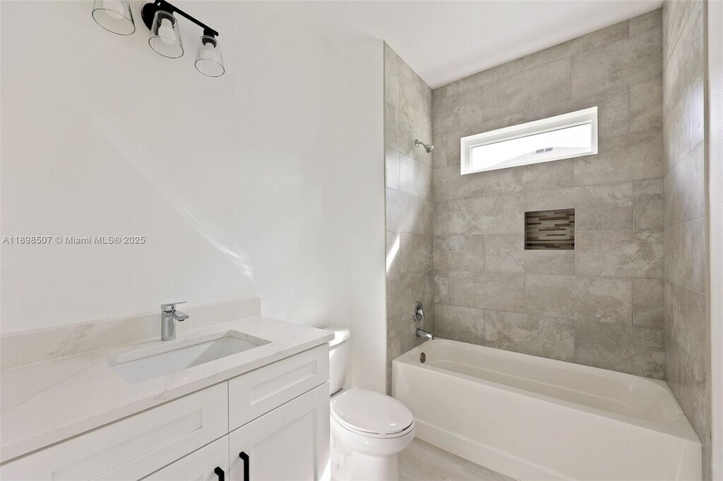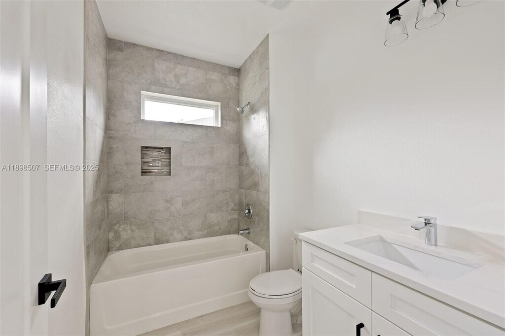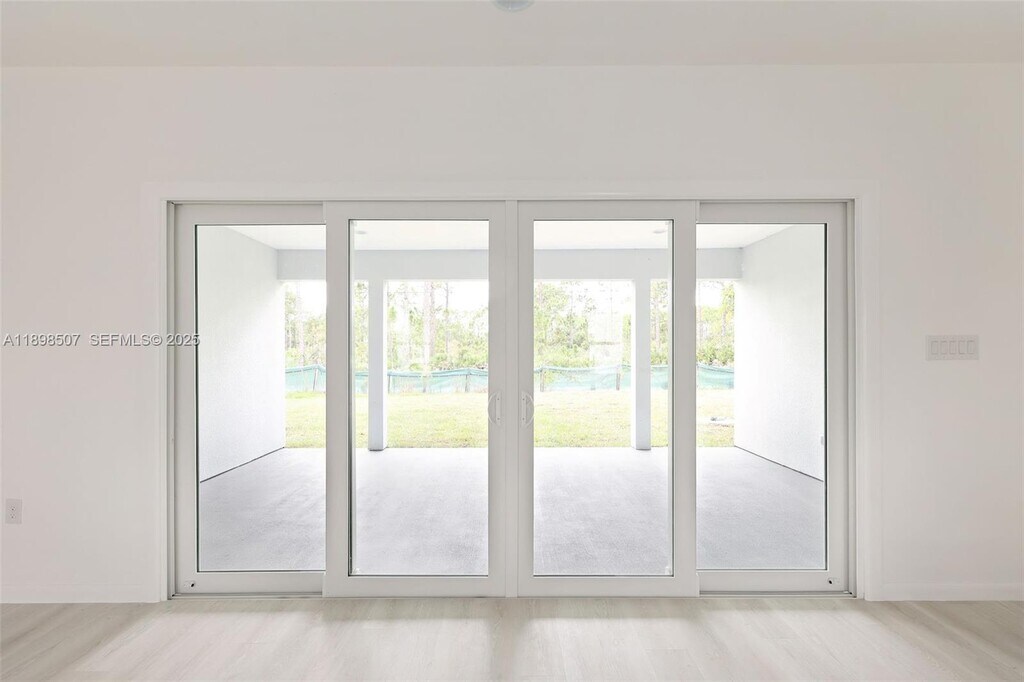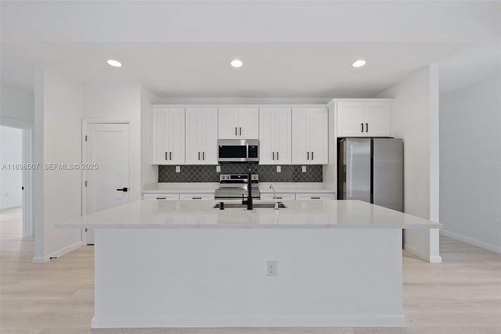 Step into this beautiful and modern home with high ceilings, offering 4 spacious bedrooms and 3 full bathrooms. The open floor plan features a great room perfect for relaxation and gatherings. The beautifully designed kitchen boasts quartz countertops, an island, and stainless steel appliances. The master suite offers a large walk-in closet and a master bathroom with white quartz double sinks and a wall-to-ceiling tiled shower, combining style and luxury. Enjoy peace of mind with impact windows, ensuring safety and tranquility.