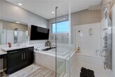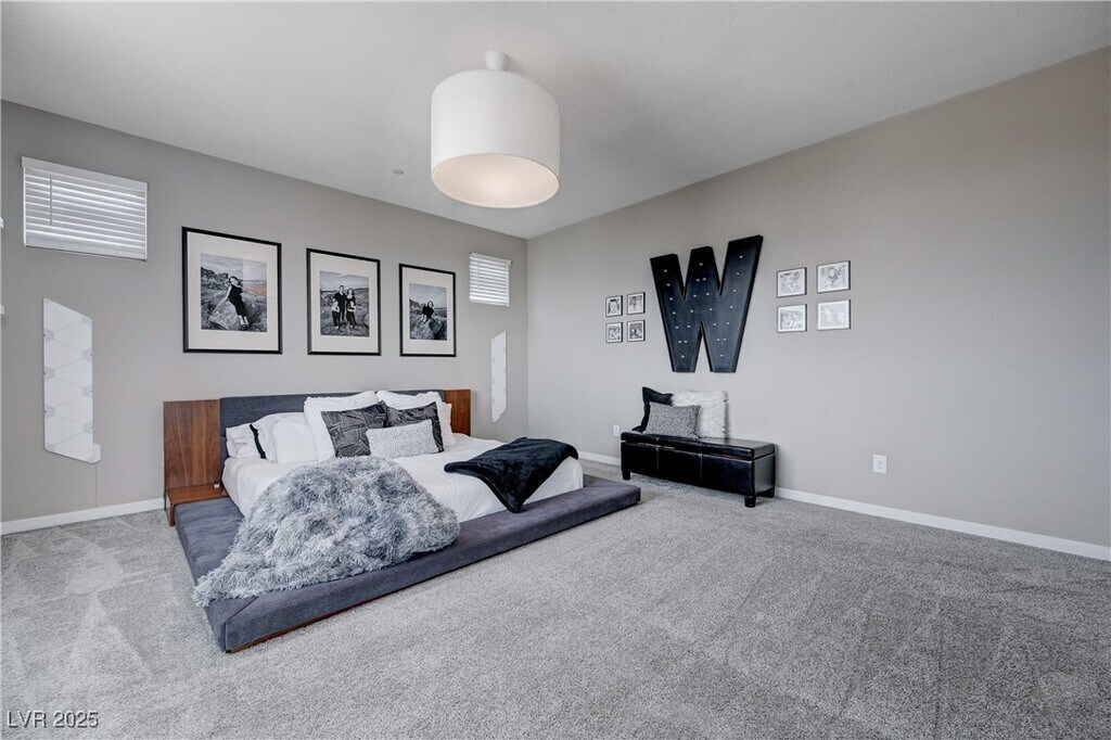 Spacious 4-Bedroom with Strip & Mountain Views in Gated Community! This well-appointed home offers stunning Strip and mountain views in an ideal location. The open-concept layout features a modern kitchen with stainless steel appliances, sleek countertops, and custom cabinetry that flows into the bright living area. A separate home gym provides space for wellness or hobbies. The expansive primary suite includes a spa-like bathroom with dual vanities, a soaking tub, and a separate shower. Generously sized secondary bedrooms provide comfort and privacy for family or guests. Enjoy sunsets from the upstairs balcony or relax in the backyard with a covered patio and low-maintenance landscaping. Located in a secure gated community, just minutes from the Strip, airport, shopping, dining, and top-rated schools.