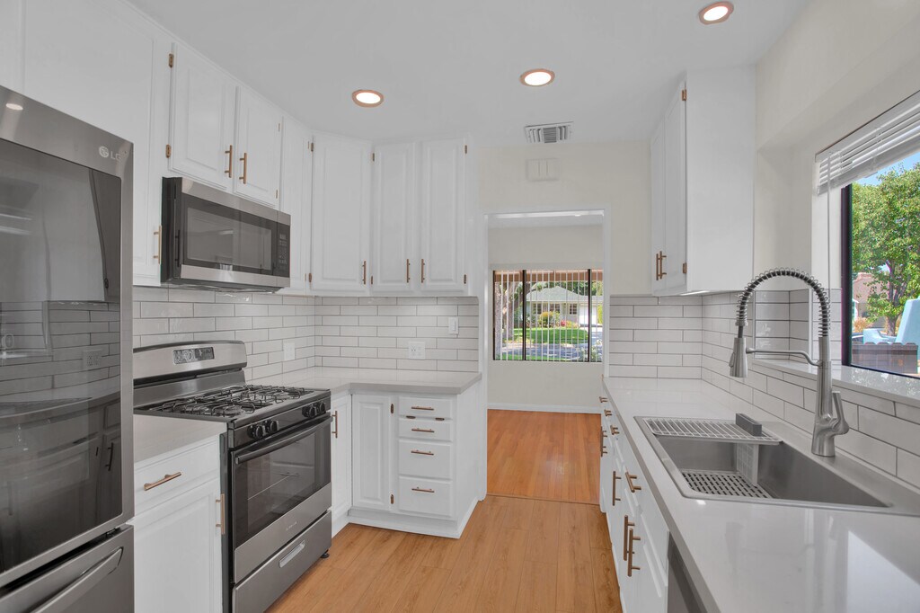 Desirable Magnolia Park Home with pool on a beautiful tree-lined street near major film studios. This 2 story home features 4 bedrooms, 2.5 baths, family room and is approximately 2100 square feet. Delight in the newly remodeled gourmet kitchen with quartz countertops, new sink and faucet, new subway tile backsplash, recessed lights, refrigerator, stove, microwave, and dishwasher. Separate laundry room with with hookups for side by side washer and dryer. Refinished hardwood floors in the living room, dining room, downstairs bedrooms and hallway. New vinyl plank flooring in the kitchen, family room, upstairs bedrooms, hallway, stairs, and 2nd dining area or den/office. The home has two central air and heating systems, a and washer/dryer hookups. The spacious family room with fireplace has French doors open to the lovely brick patio which has a patio cover for shade and overlooks the yard and pool. A detached 2 car garage and a gated concrete driveway. The landlord will provide gardener and pool chemical maintenance. Pets will be considered upon approval and pet deposit will be discussed at that time. 3D Tour: Small Pets Allowed with add. deposit Residents pay all utilities Minimum 650 Transunion Resident Credit Score. Three-Times Monthly Rent Income Requirement Square footage is approximate and is taken from online sources. 21st Century Property Management CalDRE: 02198274