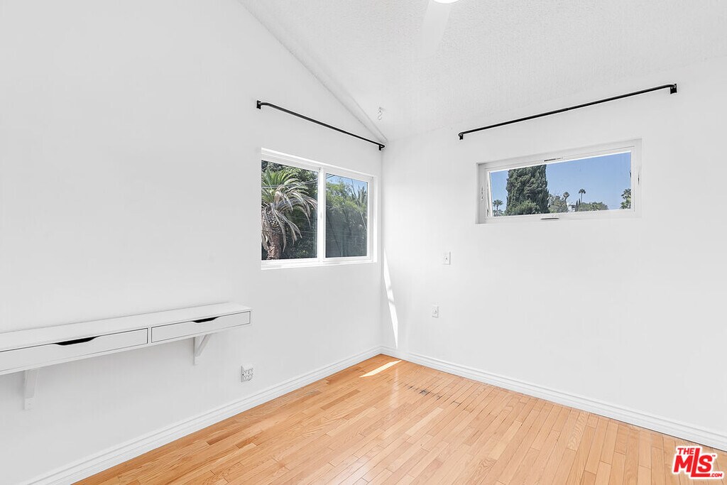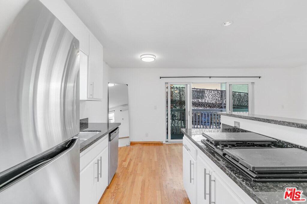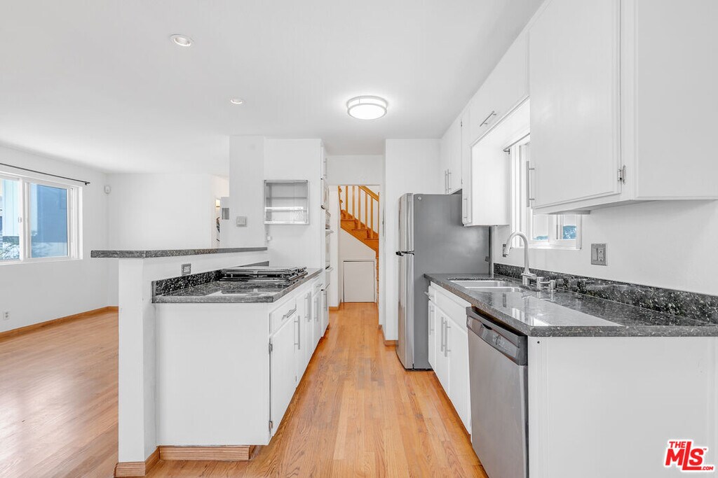 Discover this charming 3-bedroom, 2-bath standalone home in the heart of Silver Lake. With a distinct East Coast flair to its exterior, this fully detached residence delivers privacy, charming details, and all the necessities you need, plus side-by-side parking for two in your own driveway. Step inside to a bright living area that feels instantly welcoming. Just off the entrance, you will find a brand-new full bathroom for added convenience. Continue into the kitchen, where a crisp, modern aesthetic meets functionality, complete with a gas range stovetop with interchangeable grill tops, oven, dishwasher, microwave, and refrigerator. A hall closet adds extra storage, and the stacked washer/dryer is conveniently located nearby. From the living space, patio doors open to your private fenced outdoor area, perfect for entertaining, growing herbs in the planter boxes, or setting up a cozy lounge. Upstairs, you will find three inviting bedrooms. The largest bedroom boasts a vaulted ceiling, an extra-long closet, and a ceiling fan. One of the two additional bedrooms offers direct access to the outdoor space, while both feature mirrored closets, serene views of the Silver Lake hills, and fresh new flooring. A second full bath has been updated with a sleek vanity and shower/tub combo to complete the upper level. With central AC and heat, comfort is yours year-round. This one checks all the boxes! Don't miss out on this Silver Lake gem! MLS# 25584485