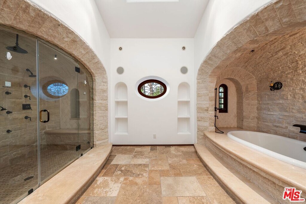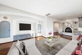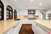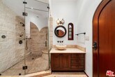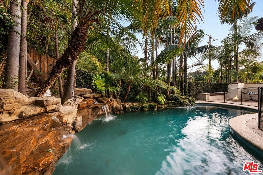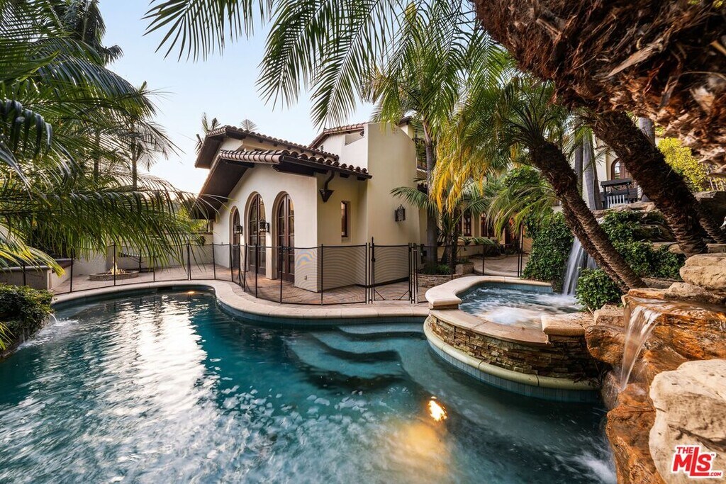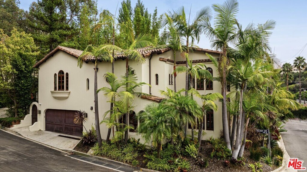 Nestled in one of Brentwood's most scenic enclaves, 746 Norway Lane is a Spanish-inspired villa that blends timeless charm with everyday functionality. A grand two-story foyer, highlighted by a sweeping wrought-iron staircase and expansive custom arched windows, sets the tone for this architectural gem. The thoughtfully designed floor plan showcases authentic details such as barrel and tray ceilings, iron details, exposed beams, arched passages, and thick plaster walls. The chef's kitchen is appointed with custom cabinetry and Viking appliances, opening seamlessly to the home's living and entertaining spaces. Upstairs, four generous bedrooms plus an office feature pitched ceilings and beautifully finished bathrooms, while the primary suite offers a serene retreat with private balconies overlooking the lush backyard. Refined finishes throughout include stone and marble surfaces, gold-leaf accents, antiqued mirrors, and rich walnut floors. The rear grounds provide an ideal setting for entertaining with resort-like amenities including lush landscaping, cascading waterfalls, a lagoon-style pool, built-in barbecue, and fire-pit. Impeccably maintained and move-in ready, this residence represents one of Brentwood's best offerings, located just minutes from the Brentwood Country Mart, the Getty, and the Westside's finest destinations, combining privacy, elegance, and convenience in a rare opportunity. MLS# 25581199