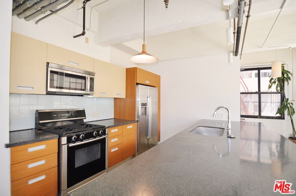 Historic 1 bed 1 bath live/work loft in the Cornell Building, in the heart of the Fashion District. Formerly a textile building, this amazingly bright and airy south facing loft features industrial finishes such as high ceilings, concrete floors, and a huge wall of vintage iron windows. The open plan loft is 770sf, and has two areas that can be a bedroom or office. The galley kitchen is equipped with stainless steel fridge, dishwasher, oven, microwave, and plenty of storage. Large bathroom has a full soaking tub and shower, as well as side-by side Washer/Dryer. Central heat/AC throughout on a Nest Thermostat. Rent includes water, trash, gas. 1 Parking space included in the covered 636 Maple St parking structure. Amenities for residents include a rooftop pool, rooftop hot tubs, gym, rooftop basketball court, and 24/7 building security patrol. Within blocks to all the best of DTLA, including Whole Foods, Apple Store, The Broad, City Market South, Walt Disney Concert Hall, Bendix Art Space, IL Caffe, Per La Hotel, Civil Coffee, Proper and Hoxton Hotels, Cliftons, Earth Bean Coffee, Mona Pasta Bar, The Bloc, Fig&7th, Rossoblu, Sonoratown, Dama, Poppy & Rose, Broken Mouth, Holy Basil, and tons more. MLS# 25570759
