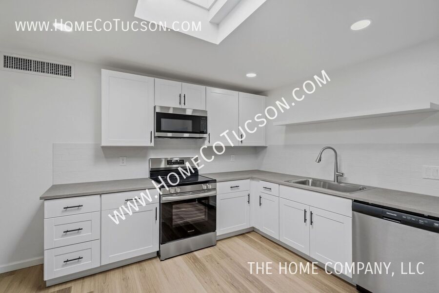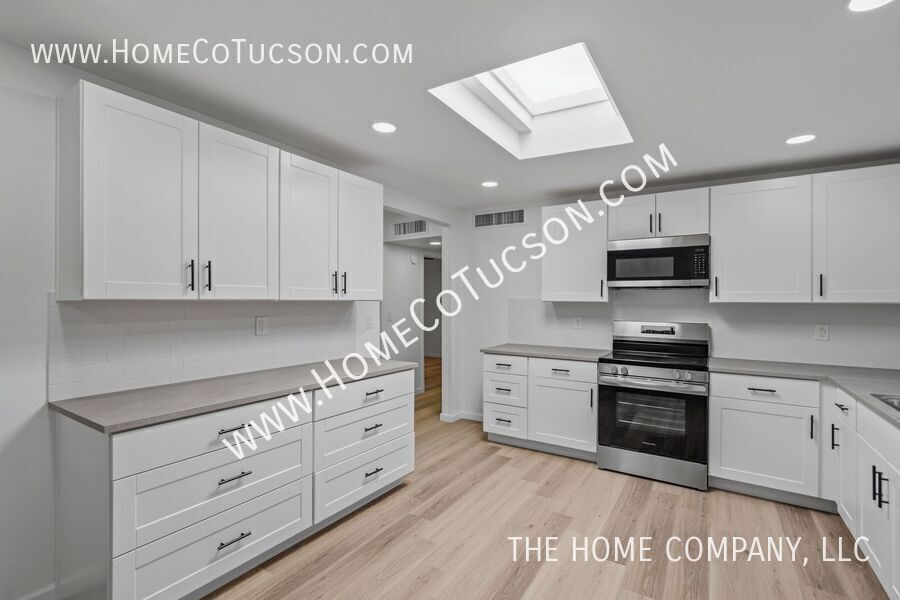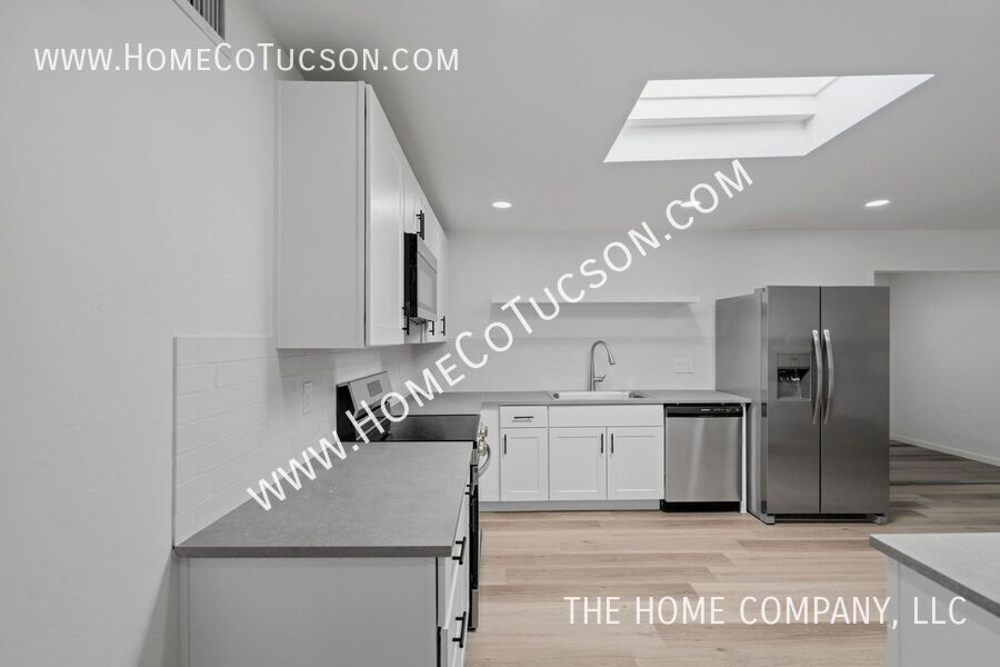 This beautifully refreshed single-story home offers a thoughtful layout, abundant natural light, and multiple versatile living spaces designed for both comfort and functionality. Clean lines, wide plank flooring, recessed lighting, and a soft neutral palette create a bright, cohesive feel throughout the interior. The living room offers a fireplace with a raised hearth that adds warmth and architectural character. The space flows naturally into the dining area and updated kitchen, creating an inviting setting for everyday living or entertaining. The kitchen features white cabinetry, sleek countertops, stainless steel appliances, a tile backsplash, and a skylight that fills the room with natural light. Adjacent spaces provide flexibility for dining, gathering, or extended living. The primary bedroom is generously sized and thoughtfully extended, offering a comfortable retreat. From the primary suite, there is direct access to the enclosed Arizona room, creating a seamless connection between indoor living and additional usable space. This setup is ideal for enjoying quiet mornings, relaxing evenings, or creating a personalized sitting area just steps from the bedroom. The enclosed Arizona room adds valuable square footage and versatility, with ample natural light and a bright, open feel. It functions beautifully as a secondary living area, reading room, or flex space while maintaining separation from the main living areas. A dedicated laundry room enhances day-to-day convenience, offering a functional and organized space. Nearby, a bonus room adjacent to the laundry provides even more flexibility — perfect for a home office or hobby room. The exterior showcases classic Arizona curb appeal with low-maintenance desert landscaping and a wide driveway leading to the garage. The garage includes a separate storage room, adding practical space for tools, equipment, or seasonal items. This home combines timeless character with modern updates and flexible living spaces, making it well-suited for a variety of lifestyles. VIDEO TOUR: Explore this property with our comprehensive video tour to get a closer look at every detail before scheduling an in-person visit. **Walking Tour** **Virtual Tour** HOA: NO HOA UTILITIES: Tenant is responsible for all utilities and a $75 monthly solar fee. To review our rental qualifications, apply, view additional video tours, or schedule a showing, please visit: **Website: ** For questions during business hours, please contact us: Text: Email: QUALIFYING REQUIREMENTS: Email for a full disclosure of fees and to review a blank lease document. Experience the difference with The Home Company! Visit to schedule a showing, apply, view additional media for each available property, and review detailed qualifying requirements and information. Proudly setting the standard for property management in Arizona, The Home Company is dedicated to improving the rental experience for both tenants and landlords. As an Equal Opportunity Housing provider, we are committed to fairness and transparency in every interaction. All our agents are licensed Real Estate Professionals, delivering knowledgeable support and exceptional service. Please note, The Home Company, LLC exclusively represents the Landlord in all property-related matters. As the Landlord’s authorized Agent, our responsibility is to act in their best interests throughout the rental process. Call: (Leasing Department, Monday–Friday, 10 AM–4 PM) Arizona Room Bonus Room Laundry Room Low Care Desert Landscape No Hoa One Story Recently Updated Refridgerator Southwest Gas 1 Storage Room Storage Shed Tenant To Contact The Following Utilities To Establish Service: Trash Service Of Tenants Choice Tucson Electric Power Tucson Water & Sewer Updated Flooring Updated Kitchen Updated Lighting Vinyl Plank Flooring