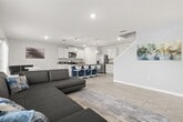 Move in by November 1st and receive a $500 incentive off your first months rent!! Experience resort-style living in this stunning 5-bedroom,3-bathroom home located in the exclusive gated community of Riviera Bella East. This spacious residence offers over 2,600 sq. ft. of thoughtfully designed living space,combining modern elegance with everyday comfort. The first floor features an open-concept layout with a chef-inspired kitchen boasting granite countertops,stainless steel appliances,and a large center island with bar seating. The kitchen flows seamlessly into the dining and living areas,which open to a covered porch overlooking the fully fenced backyard,perfect for indoor/outdoor entertaining. A versatile flex room,guest bedroom,and full bath complete the first level. Upstairs,the expansive primary suite includes a spa-like en suite bathroom and walk-in closet. Three additional bedrooms,a second full bath,laundry room,and a spacious loft provide plenty of room for family,guests,or a home office. Garage equipped with Tesla charging capabilities! Riviera Bella East offers a truly elevated lifestyle with a resort-style pool,state-of-the-art fitness center,elegant clubhouse,and playground,all within a beautifully landscaped gated community. This home is available unfurnished or fully furnished as seen in photos—please inquire for furnished rental rates. Don’t miss the opportunity to live in one of the area’s most desirable luxury communities. Schedule your private showing today! MLS# TB8424989