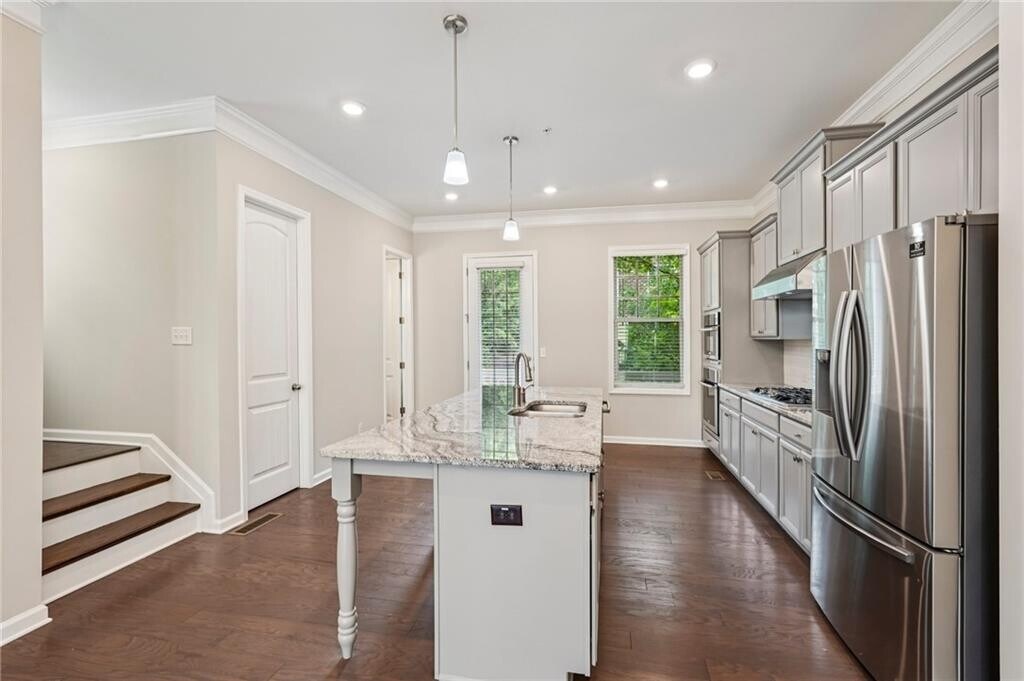AVAILABLE FOR RENT! End-Unit Townhome in Caravelle at Windward Park Spacious 4BR/3.5BA Bayfield floor plan featuring a private terrace-level suite,versatile loft,and bright open-concept main level. Gourmet kitchen with double ovens,granite counters,and a butler?s pantry. Enjoy internet access points on every floor,a cozy gas fireplace,and a large private deck. Community offers resort-style amenities including a pool and green spaces. Prime Alpharetta location near Avalon,Downtown,GA-400 & top schools.