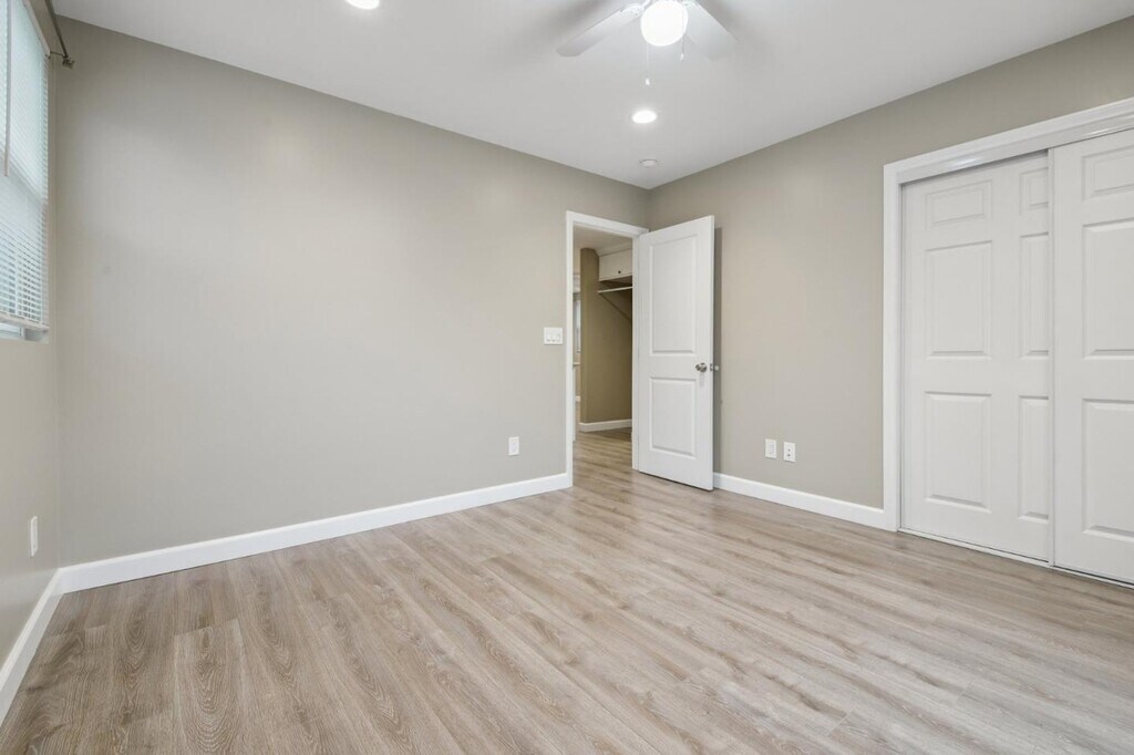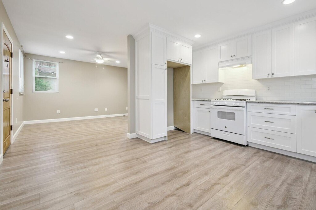 Offering a clean layout and neutral finishes, this two-bedroom, one-bath unit is designed for practical daily use and supported by central A/C for year-round climate control. Light-toned flooring runs throughout, creating a cohesive flow between shared and private spaces without overstating design details. The main living and dining area connects directly to the kitchen, allowing for easy transitions throughout the day. In the kitchen, white cabinetry, a full-size gas range, a dishwasher, and a tiled backsplash create a practical workspace, while multiple windows bring in steady natural light. The adjacent dining area offers flexibility for daily meals or a simple home setup. Both bedrooms feature matching flooring, recessed lighting, and ceiling fans, giving each room a balanced and usable feel. The bathroom includes a walk-in shower with tiled surround, a vanity with cabinet storage, and straightforward fixtures arranged to make good use of the space. Grocery options like Vons, Ralphs, and Trader Joes are close by, along with local cafes and eateries throughout the 6th Street corridor. Outdoor time is easy to plan with Point Fermin Park, the San Pedro Waterfront, and Cabrillo Beach all within a short drive.