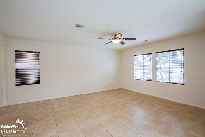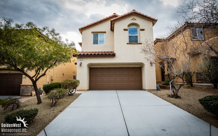 Beautifully Maintained 3Bdm 2.5Ba Two-Story Home nestled in a desirable Southwest Las Vegas neighborhood. The open-concept main living area features tile flooring, recessed lighting, and a ceiling fan, creating a bright and comfortable space for everyday living and entertaining. The layout flows seamlessly into the dining area and kitchen, offering both functionality and style. The kitchen is well-appointed with dark wood cabinetry, granite countertops, a center island with a breakfast bar, and stainless steel appliances which include a Stove top, built in oven, microwave, refrigerator, and dishwasher.. Upstairs, the primary bedroom offers plush carpeting, ample natural light, and a private ensuite bathroom. The primary bathroom features dual vanities, a soaking tub, and a separate walk-in shower, creating a relaxing retreat. The secondary bedrooms are generously sized with comfortable carpeting and closet space, while the secondary bathroom offers modern finishes and convenience. Plus a loft! The sliding glass doors lead to a private backyard, perfect for outdoor relaxation or entertaining. Conveniently located in Southwest Las Vegas, this home is close to parks, shopping centers, dining, and major roadways, providing easy access to everyday essentials and commuter routes while still offering a neighborhood feel. Tenant pays all utilities. Pets with approval via process. This property allows self guided viewing without an appointment. Contact for details.