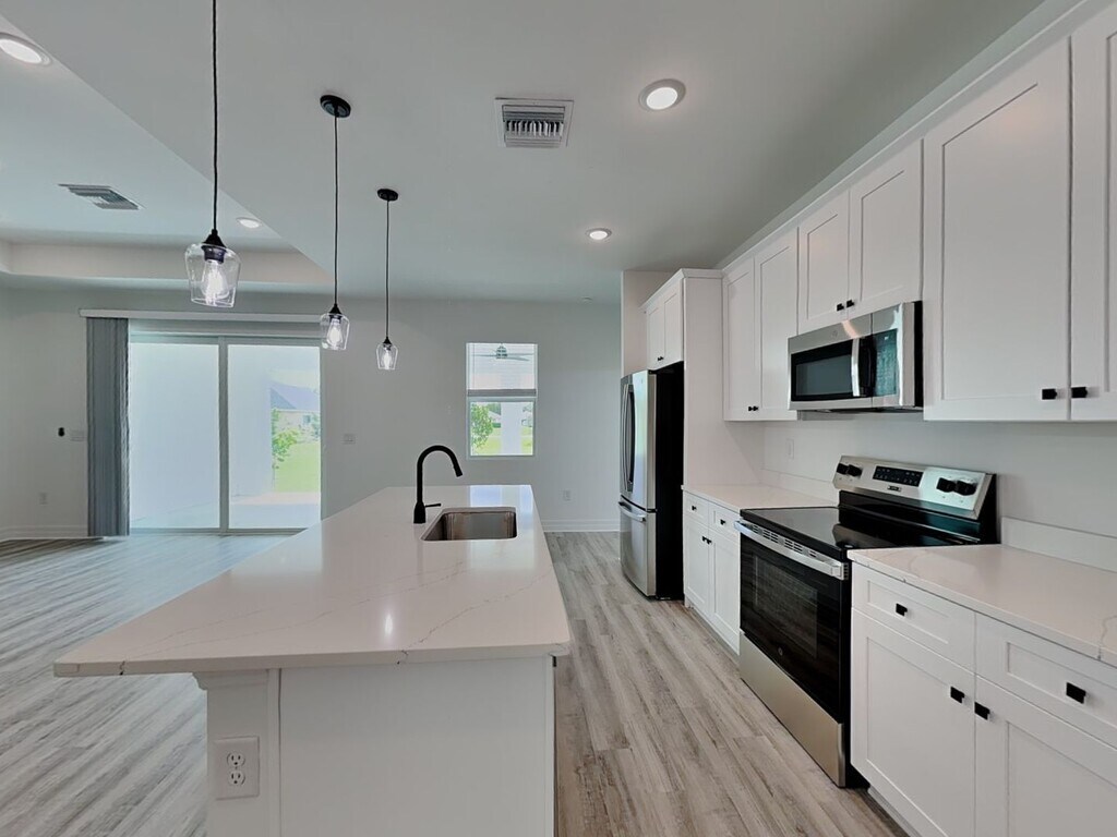 This home has a grand great room entrance into a beautiful open floor plan. You'll notice in the foyer, that the home has high (9'4") ceilings, a tray in both the great room and master, gorgeous LVP flooring throughout, granite countertops, stainless appliances, Hurricane IMPACT WINDOWS, and much more. The Master Suite two walk in closets and leads to the Master Bath with double sinks, soaker tub and an all tile shower. The second and third bedrooms share a large guest bath. All of the rooms are spacious and comfortable. If entertaining is your thing, the back sliders lead out to a huge covered lanai. In Port Charlotte, you are always near world class beaches (Siesta Key, Englewood, etc), surrounded by golf courses, restaurants, shopping, boating, fishing, and even Minor League and Spring Training baseball! By submitting your information on this page you consent to being contacted by the Property Manager and RentEngine via SMS, phone, or email.
