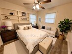 This beautiful 4-bedroom, 2-bath home is adorned with stunning stone accents on the exterior. Inside, the kitchen shines with a gorgeous backsplash, plenty of counter and cabinet space, and brand-new appliances, including a dishwasher. Full-size washer and dryer connections are conveniently located within the home. The spacious master bedroom features a cozy stone fireplace, while the master bath offers a luxurious walk-in shower. Outside, enjoy a large backyard with a handy storage unit for added convenience.