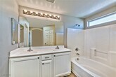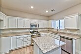 Beautiful 4-bedroom, 3-bath home offering a spacious and functional layout. A large, separate front living room welcomes you inside, while the well-appointed kitchen features stainless steel appliances, granite countertops, custom cabinetry, a garden window, center island, pantry, and wood-laminate flooring. The adjacent family room includes a ceiling fan and direct access to the backyard—perfect for everyday living and entertaining. All bedrooms are located upstairs and feature new carpet and ceiling fans. The spacious primary suite offers a walk-in closet and ceiling fan, while the ensuite bath includes dual sinks and a tub/shower combination. Wood-laminate flooring flows throughout the downstairs, adding style and durability to this move-in-ready home.