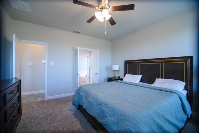 Located in highly sought-after Northwest ISD, this beautifully designed two-story home offers over 2,800 square feet with 5 bedrooms and 4 full bathrooms on an oversized lot. There is BRAND NEW CARPET and FRESH PAINT. The open-concept floor plan features a spacious living area that flows seamlessly into the chef’s kitchen with a large island, quartz countertops, tiled backsplash, stainless steel appliances, gas range, and walk-in pantry—perfect for everyday living and entertaining. The main level includes a generously sized primary suite with dual-sink quartz vanity, garden tub, oversized shower, and walk-in closet, plus an additional bedroom and full bath ideal for multigenerational living or a home office. Upstairs you'll find three more bedrooms, two full bathrooms with quartz vanities, and an enormous game room that can accommodate multiple living, work, or play spaces. Step outside to enjoy the covered patio overlooking the fully fenced backyard. Additional features include a tankless water heater, full sprinkler system, and access to community pool. Conveniently located near shopping, dining, entertainment, and with easy access to HWY 287 and I-35W.