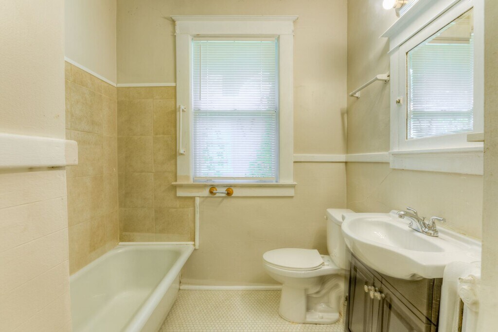 This classic brick bungalow features high ceilings, hardwood floors, and a welcoming front porch. Four bedrooms are on the main level, including one with a private half bath, and the spacious upstairs bedroom has its own full bath. The home also includes a basement for extra storage and comes with appliances, including a refrigerator, gas range, dishwasher, washer, and dryer. Recent updates include fresh interior paint, new blinds, new flooring in the kitchen and mudroom, and new countertops, blending historic charm with modern convenience. Ideally located near Overton Park, Rhodes College, Crosstown Concourse, the Memphis Zoo, and the V&E Greenline, this home puts you close to parks, dining, and Midtown attractions.