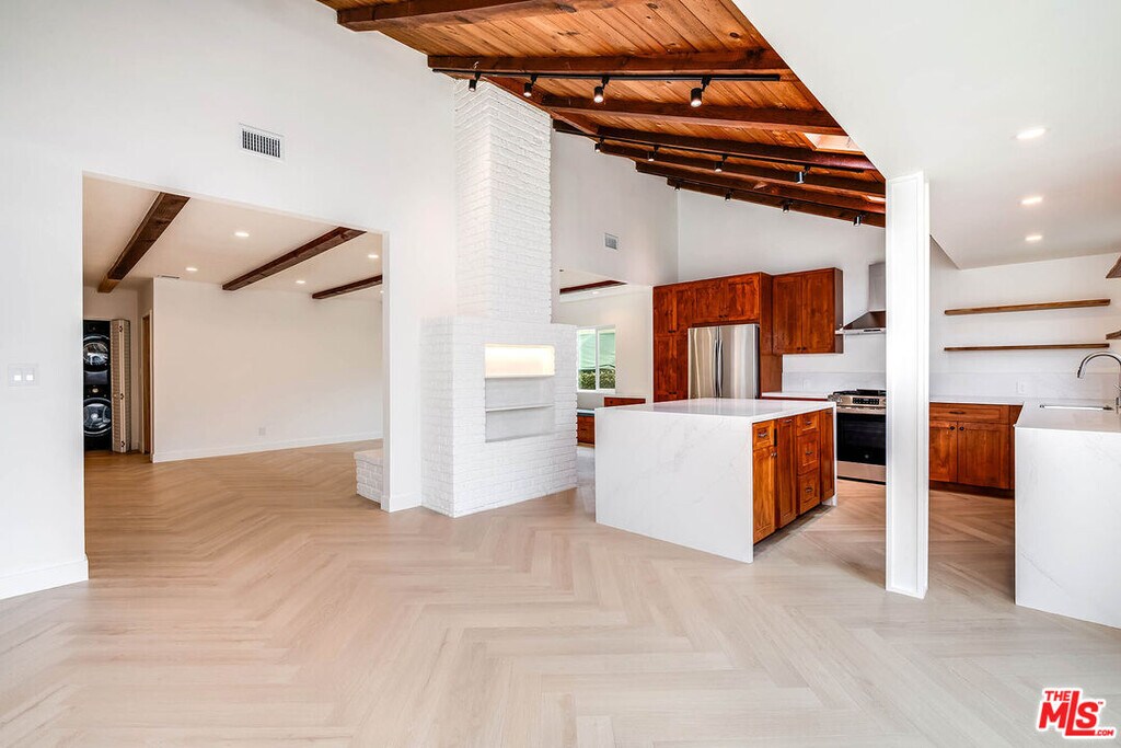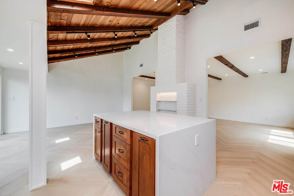 Beautifully renovated 3-bedroom, 3-bathroom main residence offering approximately 1,677 sq ft of living space in the main house and an additional detached 1-bed/1-bath unit, on a generous 6,750 sq ft lot in one of Burbank's most desirable neighborhoods. This light-filled home blends modern updates with timeless character, featuring all-new wide-plank hardwood floors, exposed wood beam ceilings, recessed lighting, and a striking white brick fireplace that anchors the spacious living area. The open-concept layout flows seamlessly into a stylish kitchen with custom cabinetry, sleek countertops, stainless steel appliances, two skylights for natural light, and a large center island ideal for cooking and entertaining. The property has been extensively upgraded with new windows, newly renovated bathrooms in the main house, updated electrical and gas lines, and new appliances including washer, dryer, stove, and hood, along with a solar system for improved energy efficiency. Expansive sliding doors open to a private backyard with new turf landscaping, a mature citrus tree, outdoor jacuzzi, and a gas line connection ready for a future firepit if desired. In addition to the main residence, the property includes a separate bonus space with 1 bedroom, 1 bathroom, and a small kitchenette, offering flexible space ideal for extended family use, a home office, or creative studio. The home also features an attached garage and is ideally located moments from Magnolia Park's shops, cafs, and restaurants, as well as major studios and convenient freeway access, offering comfort, style, and an exceptional lease opportunity in the heart of Burbank. MLS# 26663281