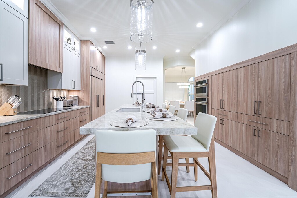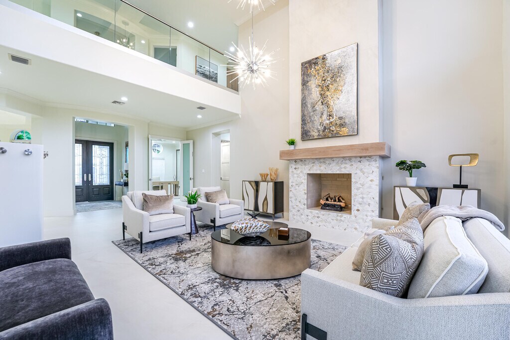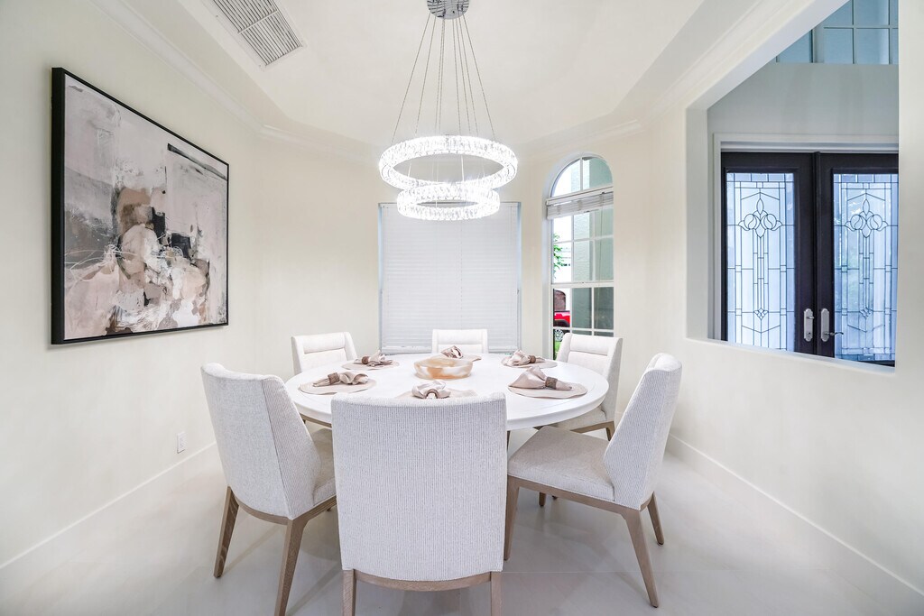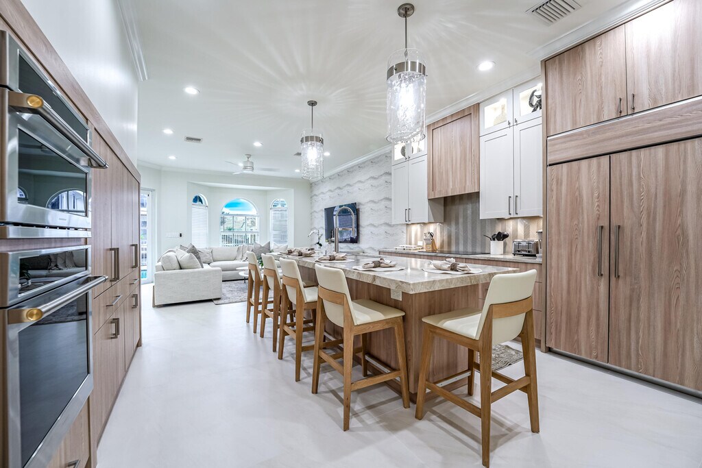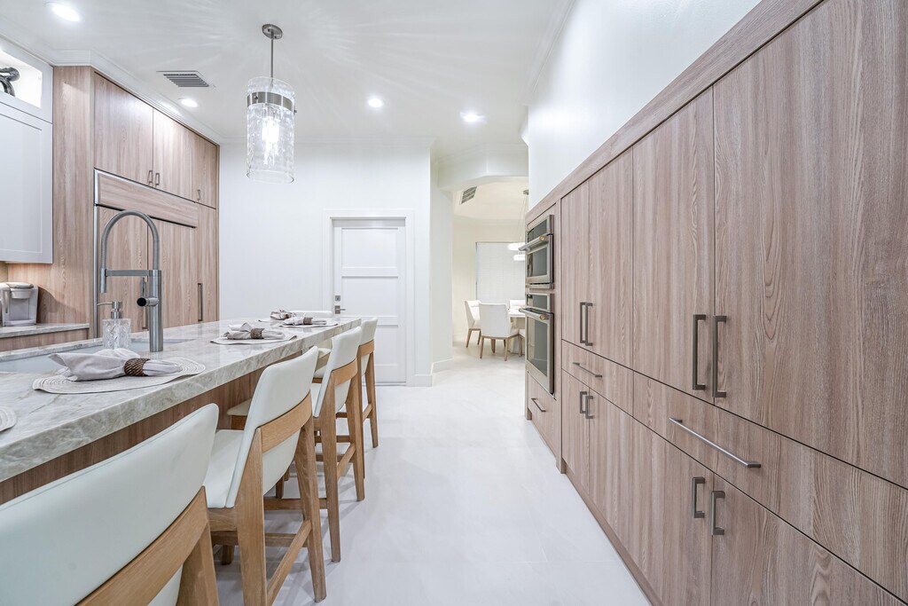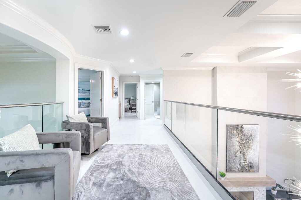 A Statement of Prestige, meticulously and totally redesigned residence! This stunning property boasts 5 bedrooms plus and OFFICE! 5 bathrooms, 3 car garage, pool area plus a Tiki house and 80' water frontage of unrivaled grandeur in the prestigious Boca Harbour community. Step inside and be greeted by a grand fireplace mantel adorned with stone, vibrant large matte porcelain tile flowing through the entire property, soaring ceilings large windows that provides abundant natural light. A Modern elegance adorned by neutral brand new furniture creates a stunning, inviting, cozy environment accented with glass railing and brushed nickel hardware seamlessly integrated across the home. New Monogram appliances offer blend cutting edge technology & refined culinary experience. Built in fridge