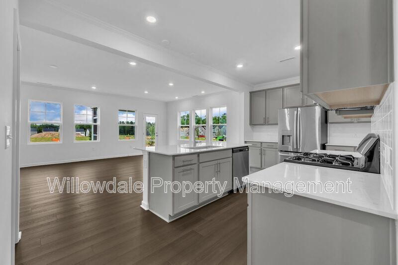 LVP greats you as you step foot into this new construction home. Featuring a beautiful upgraded kitchen featuring tiled backsplash, stainless appliance, stunning white counter-tops and more. The lovely open floor plan is fantastic for entertaining inside, or head outside to the screened in porch for your morning coffee. The large open area offers many options for your living area and daily living.. Upstairs you'll find a large open loft, two bedrooms with adjacent bathroom, laundry and a large spacious primary bedroom with upgraded bath including a tiled shower with bench. Close to all Wendell has to offer. Community pool and playground. FIBER INTERNET INCLUDED IN RENT All Willowdale Property Management residents are enrolled in the Resident Benefits Package (RBP) for $40.95/month which includes renters insurance, HVAC air filter delivery (for applicable properties), credit building to help boost your credit score with timely rent payments, $1M Identity Protection, move-in concierge service making utility connection and home service setup a breeze, our best-in-class resident rewards program, and much more! More details upon application