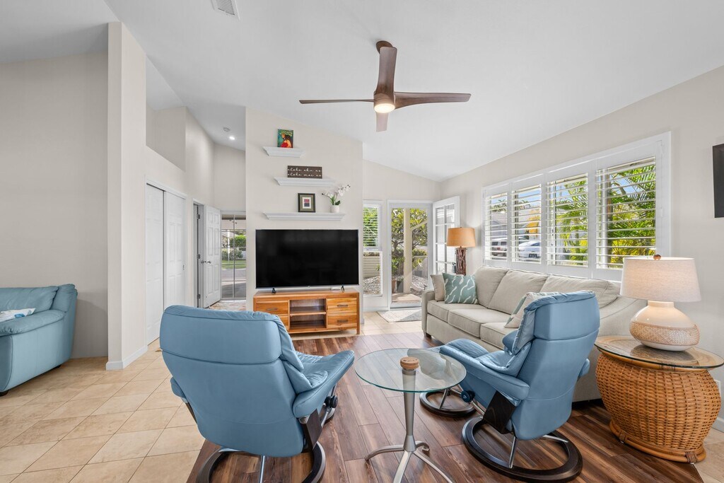 Live in a quiet neighborhood just five minutes from shopping and the ocean. This beautifully furnished, ocean view, free standing single-level condo is freshly renovated and painted and available for 6 months. The home provides space to spread out with two bedrooms, two bathrooms, an office and a large, covered lanai with an ocean view. There is also a full kitchen and laundry machines and air conditioning to keep the home cool. Owners store their cars in the garage, but there is parking for two vehicles in the driveway and space in the garage for your bicycles or a moped. The kitchen has plentiful cabinet space, granite countertops and quality, stainless steel appliances. Get a peek at the ocean from the kitchen windows while you prepare dinner. A dining table seats four or dine out on the lanai any time of year. Vaulted ceilings increase the sense of space in the great room where many large windows and sliding glass doors invite natural light into the home. The master bedroom suite features a king size bed, a large closet and a sliding glass door which opens to the lanai. The beautifully appointed bathroom is conveniently designed and offers a large tile shower. A second bedroom is set beside the guest bathroom where you'll find a full-size bathtub with shower fixtures and tasteful decor. A den off of the living room is set up as a home office. The yard is landscaped and maintained at the expense of the owner, and it showcases colorful flowers and fragrant plumeria. Most free time should be spent relaxing on the covered tile lanai. Invite friends for dinner on the lanai and watch the sun set behind the brilliant blue Pacific. RENTAL REQUIREMENTS: ~ $3500/month + GE Tax & Electric & WiFi ~ Available for a 6 month lease. April - Mid October ~ No pets are allowed. ~ Security deposit is one month's rent. For more information please CALL/TEXT Julie Marsocci R(B) at or TENANT REQUIREMENTS: ~ Background/Credit checks will be conducted with $25 application fee ~ Minimum 620 credit score ~ Household income must be at least 2.5 times the monthly rent ~ Successfully pass a background/credit check. Visit our website to see available rentals and apply online at: OFFERED BY: LUVA Real Estate 75-240 Nani Kailua Dr. Ste #8 Kailua Kona, HI 96740 RB-21030