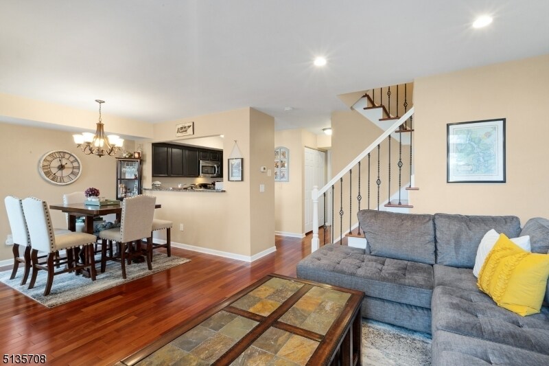 Home sweet home has never been sweeter! This charming townhouse opens to beautiful Brazilian cherry floors on the 1st floor, stairs & upper landing as well as new stairwell spindles. The remodeled kitchen features stainless steel appliances, granite counter tops, elegant cabinetry, and a breakfast bar. A wood-burning fireplace warms your home, with a greenhouse window and recessed lighting in the living room. The 1st floor also offers a remodeled powder room, full-size laundry, and garage entrance. The 2nd floor features 2 bedrooms including master w/ a dressing area & walk-in closet & newly renovated main bath w/ soaker tub. Add to that a short stroll to tennis courts, a clubhouse, pool & gym as well as nearby shopping, and you have the perfect location! Close to transportation, Routes 202, 206, 78 & 287.