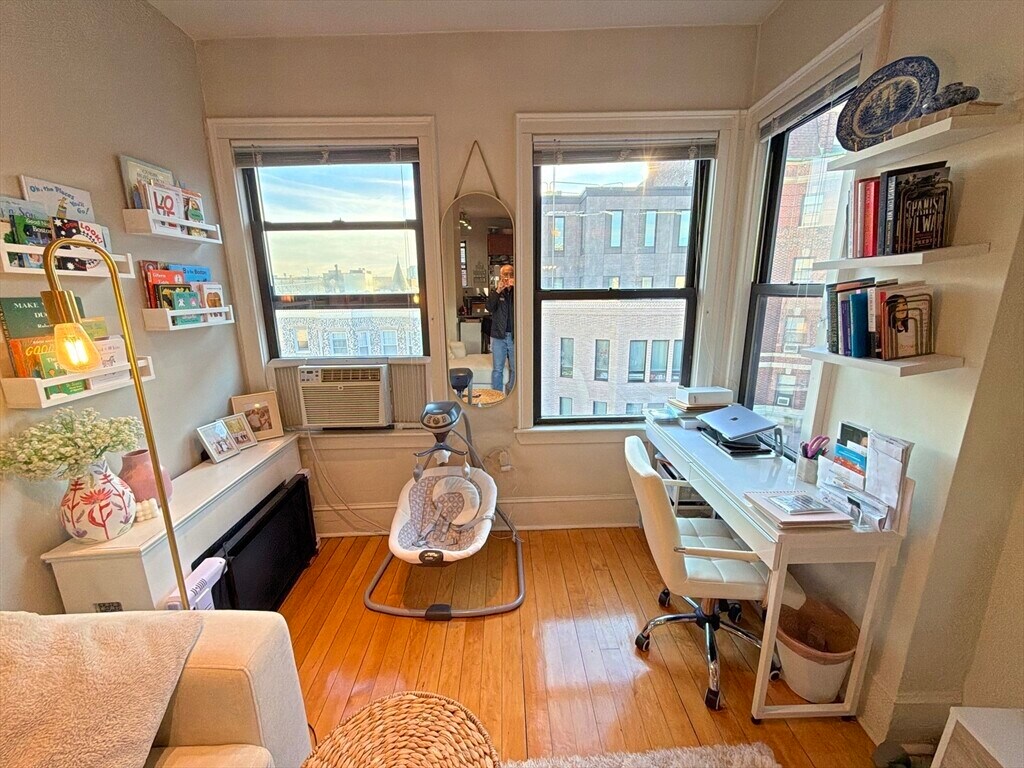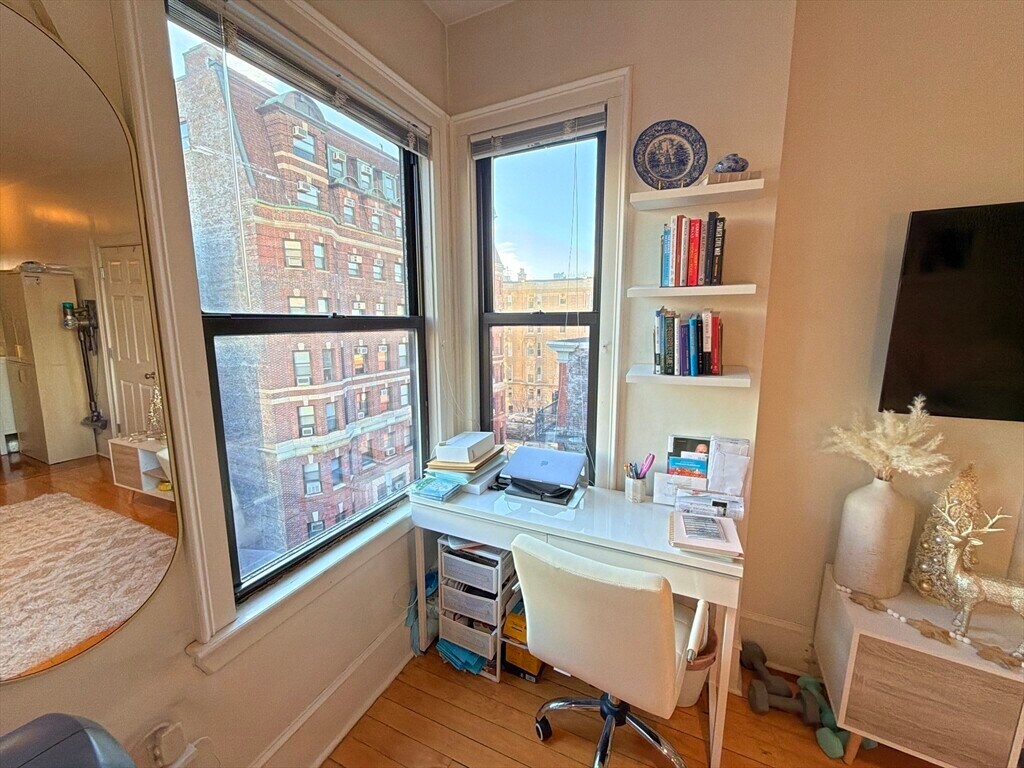 AVAILABLE JAN 1,2026: Penthouse Perch with Sky Views & Spa Vibes - Welcome to The Sky Parlor! Perched on the top floor,this unique home offers a daily 5th-floor walk-up workout,that rewards you with sky views and soaring ceilings. Features 6 luminous windows,a dreamy 2-window corner desk nook framing pure sky. The culinary quarters feature gas cooking,stainless steel appliances,dishwasher,microwave,and a built-in dining area. Retreat to a spa-inspired bath with full marble walls and a deep jacuzzi-style tub. Located in the beating heart of the city: just 1 block to Whole Foods,2 blocks to Symphony Hall & MBTA Subway Orange Line. Surrounded by the creative energy of Berklee,Boston Conservatory,MFA,Northeastern U,MassArt,and the borders of Back Bay/South End. Optional: Purchase existing furniture w/ lots of hidden storage,for a turnkey move. Common laundry in the building. Rent includes Heat/Hot Water - tenant just pays Elec. A classy gem for the spirited city dweller! MLS# 73460745