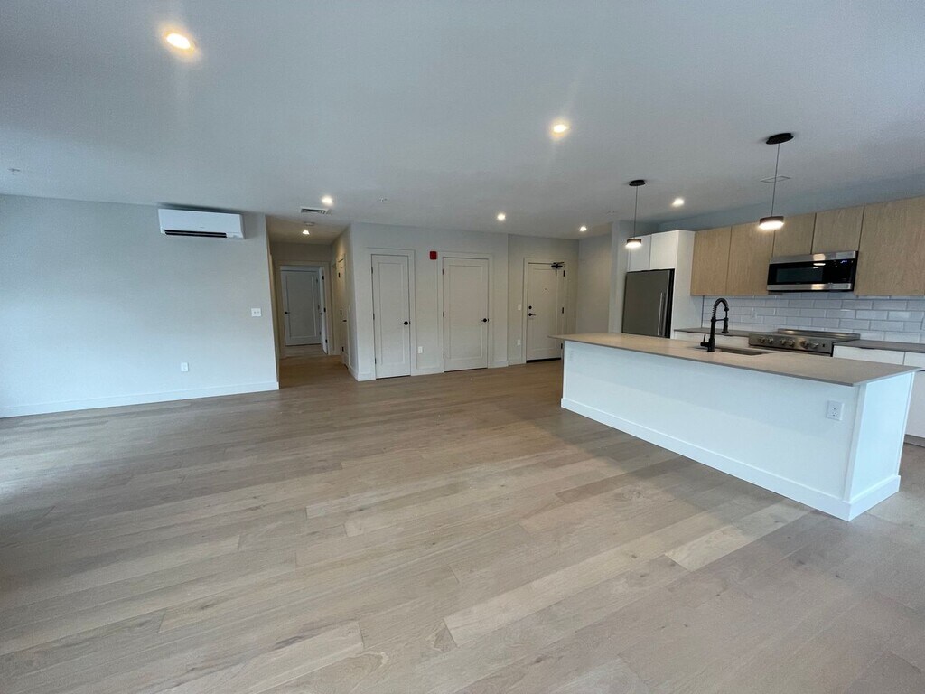 New construction, spacious corner unit condo available now. Beautiful, sunny large 2BR/2BA unfurnished condo located in the Daymark building. This spacious unit has hardwood throughout, an open living/dining area, and a private balcony. This condo comes with many on site amenities, including garage parking, in unit laundry, a sports lounge, club lounge, and pet wash! Conveniently located in the heart of the peninsula, it is a short walk to all Portland has to offer. No smoking, 1 year lease preferred. Includes 1 parking space.