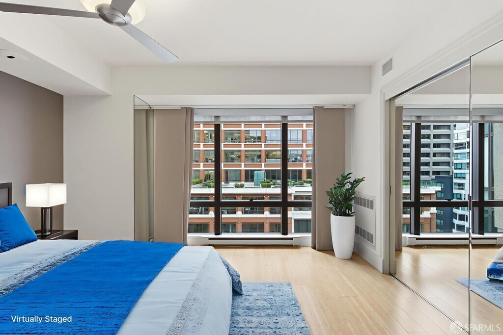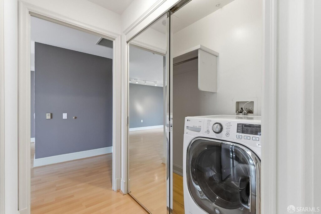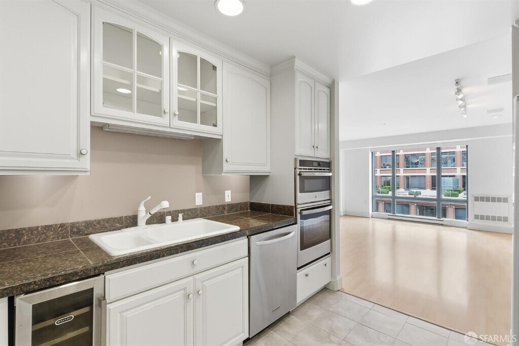 Live on the Embarcadero in style. This 1-bedroom, 1-bath home with garage parking is set along one of San Francisco's most sought-after waterfront addresses. The open floor plan offers effortless flow for living, dining, and working from home. A chef-inspired kitchen features generous counter space, a wine fridge, side-by-side refrigerator and freezer, cooktop, dishwasher, and built-in oven and microwave.The spacious bedroom provides a peaceful retreat with serene outlooks and abundant closet space, while the centrally located bathroom is conveniently accessible from the main hallway. Additional highlights include laminate flooring throughout, a spa-like travertine-tiled bath, in-unit laundry, dedicated storage, and one-car garage parking. Perfectly situated where the Bay's natural beauty meets the pulse of San Francisco's tech corridor, Hills Plaza offers exceptional convenience and amenities including: 24-hour concierge, along with a landscaped rooftop terrace of approximately 7,000 square feet showcasing stunning water and bridge views. Steps from the Embarcadero, the Ferry Building, Woodlands Market, Salesforce Park, restaurants, cafes, and major tech companies. This is waterfront living at its Finest