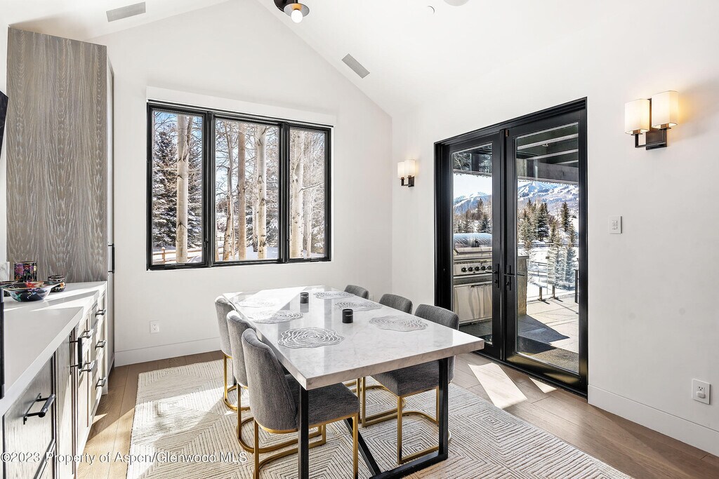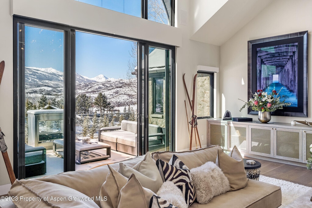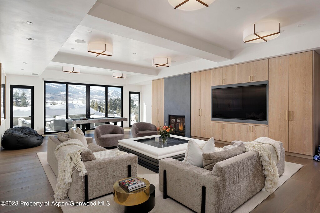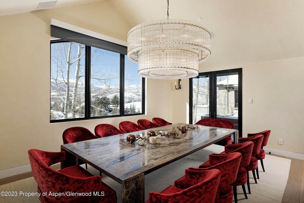 Unparalleled Elk Mountain views from this exquisite contemporary estate featuring five luxurious suites,seven & two-half bathrooms,spectacular chef's kitchen with indoor & outdoor dining areas,den & generous size family-room outfitted with pool table,ping-pong table,bar & wine room. Impressive great room with floor-to-ceiling gas fireplace,vaulted ceilings and large glass doors and windows showcasing the amazing views. Primary suite is conveniently located on the main level with a huge bathroom,private balcony,indoor & outdoor gas fireplaces & custom walk-in closet. Complete with three car-garage and separate caretaker apartment. Moments from your favorite hiking trails,Aspen Institute,Music Festival and everything that downtown Aspen has to offer.
