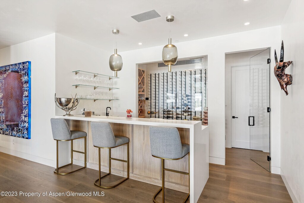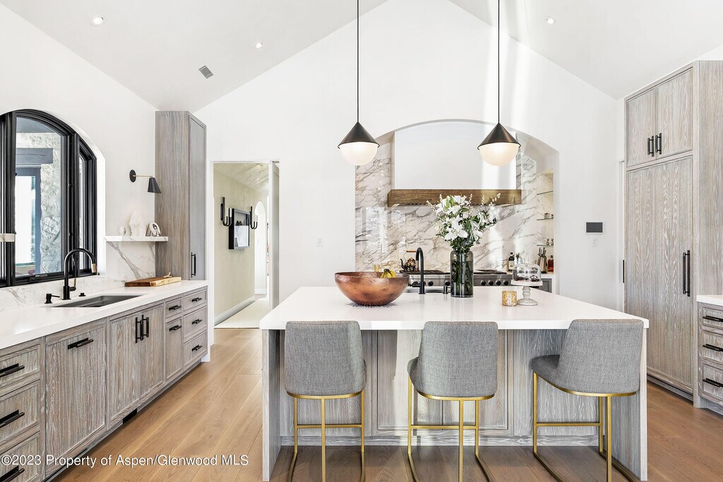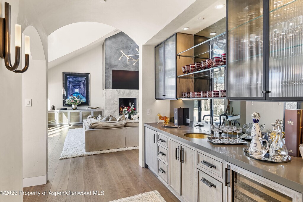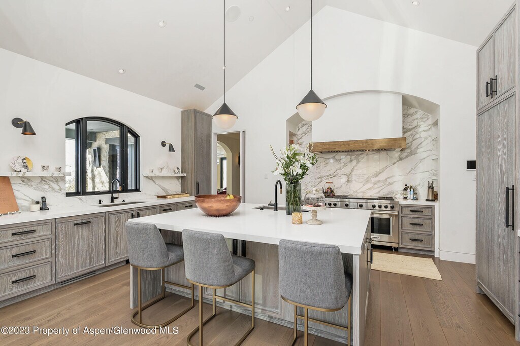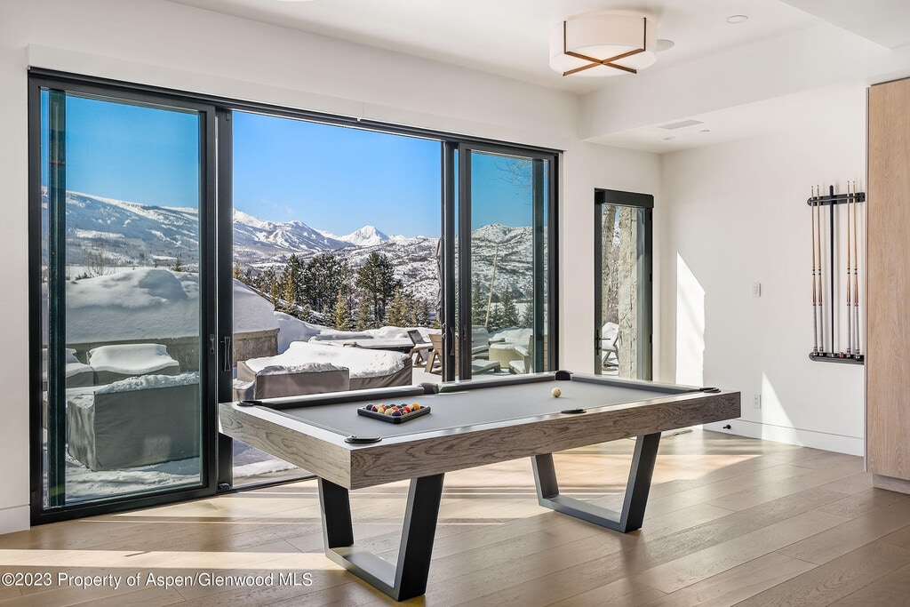Unparalleled Elk Mountain views from this exquisite contemporary estate featuring five luxurious suites,seven & two-half bathrooms,spectacular chef's kitchen with indoor & outdoor dining areas,den & generous size family-room outfitted with pool table,ping-pong table,bar & wine room. Impressive great room with floor-to-ceiling gas fireplace,vaulted ceilings and large glass doors and windows showcasing the amazing views. Primary suite is conveniently located on the main level with a huge bathroom,private balcony,indoor & outdoor gas fireplaces & custom walk-in closet. Complete with three car-garage and separate caretaker apartment. Moments from your favorite hiking trails,Aspen Institute,Music Festival and everything that downtown Aspen has to offer.