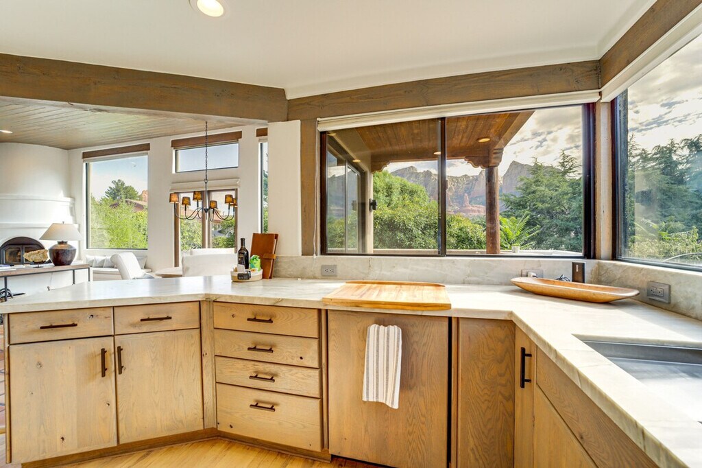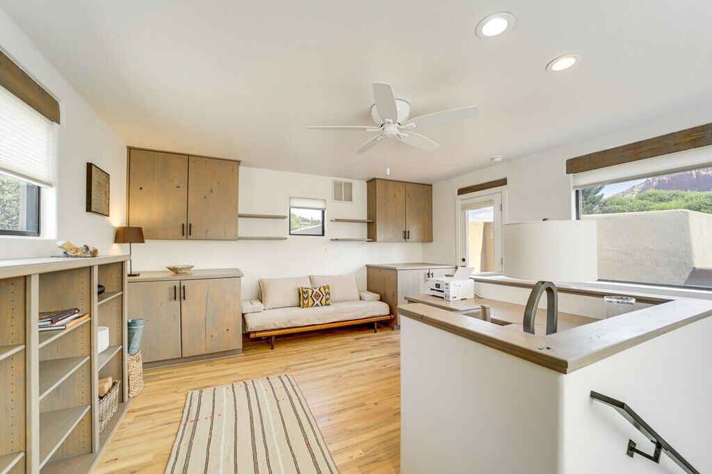 The advertised rate of $10,953/month is the lowest available price, based on a 30 day(s) stay with a move-in date of August 5, 2026. Rates vary depending on the duration of stay, season, and other parameters. For exact pricing and additional pricing components, please visit our website and enter your desired move-in and move-out dates. The rate is applicable when billed upfront; it can be higher if billed in multiple payments. Feel at home in this stunning 2-bedroom, 2-bath vacation rental in Sedona. This 2-story home requires one step to enter, but all bedrooms and bathrooms are on the main level. This home features Southwestern-style décor and expansive views of Sedona’s iconic natural landscape. Enjoy a smart TV, fireplace, Sonos home audio system, dining table, board games and books, ceiling fans, a soaker tub, and a walk-in closet. The fully equipped kitchen includes a refrigerator, stove/oven, microwave, cooking basics, dishware and flatware, trash bags, and paper towels. Other amenities include free Wi-Fi, complimentary toiletries, a hair dryer, towels and linens, a washer and dryer, central heating and A/C, keyless entry, and natural/sustainably sourced cleaning and paper products. Garage parking is available for 2 vehicles. This centrally located home is a short trip into town to peruse the Tlaquepaque Arts and Shopping Village or lace up your boots and hit the trails at Red Rock State Park. Smoking, pets, events, parties, and large gatherings are not allowed. Your safety matters. This property features 2 exterior security cameras. Camera 1 is in the front courtyard facing the front outdoor entry, and camera 2 is on the back patio facing the sliding doors. The cameras are outward facing and do not look into interior spaces. The cameras record video and sound when activated by motion. By booking this property, you agree to comply with the City of Sedona Ordinance Chapter 5.25.100. Pursuant to this Article, this property requires a sex offender background check and you agree to provide any additional information that may be required to confirm your eligibility to make this booking. Includes a work desk and printer. [SI]