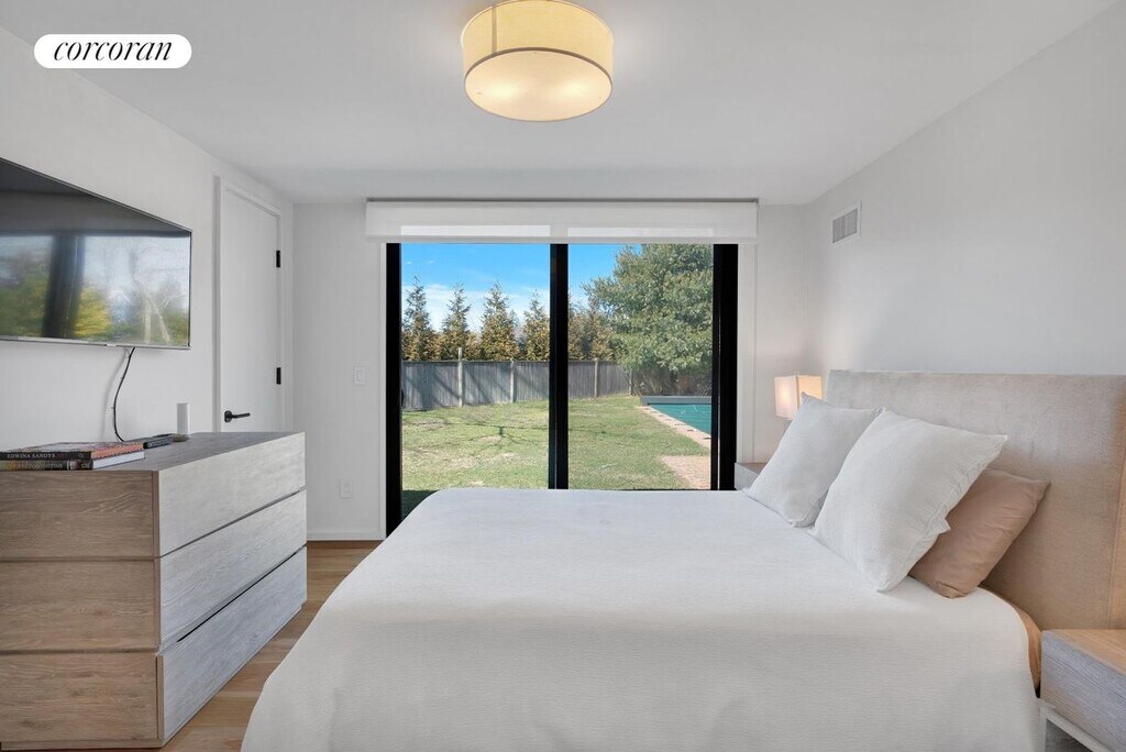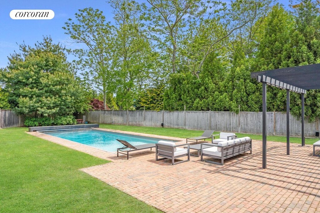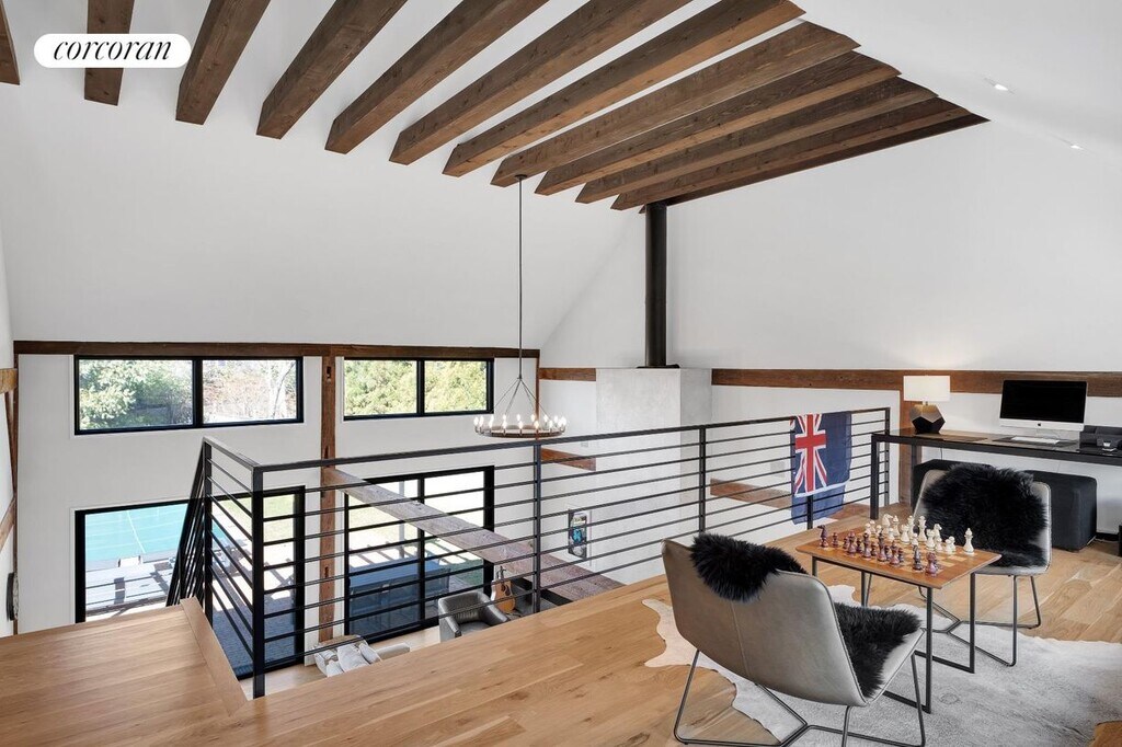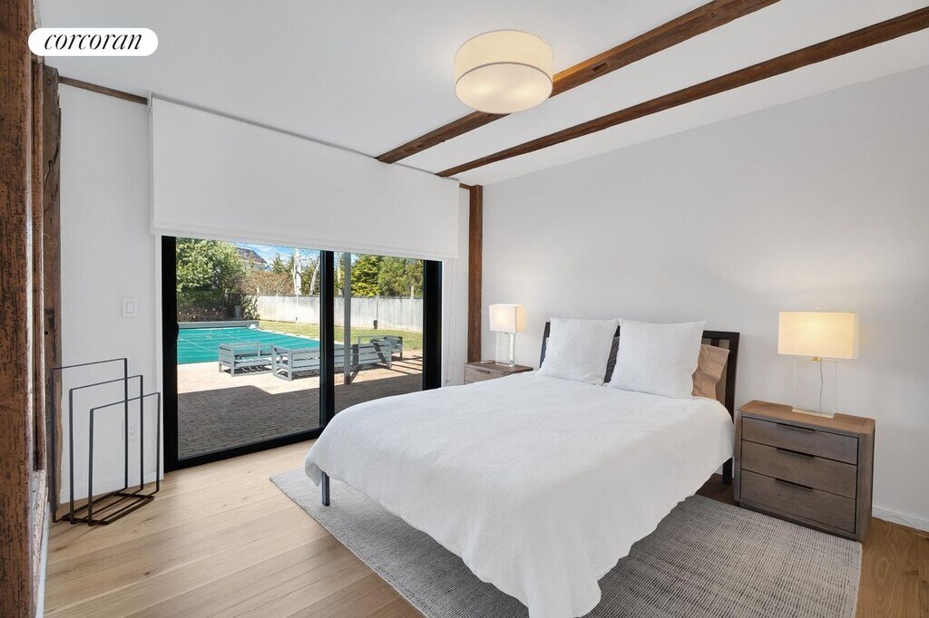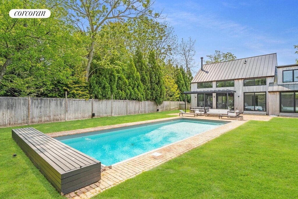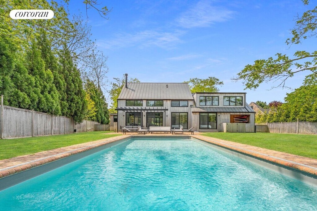 Now listed for off season and Summer 2026! A stunning modern home in close proximity to all that East Hampton Village offers - shops, restaurants, Jitney & train. This sleek barn style home is situated on a deep flag .52 acre lot, set far back off the street. The interior features a soaring two story great room with loft above. Beamed barn details and fireplace warm the common living spaces. An open concept great room/kitchen/dining area is perfect for entertaining. Multiple windows and doors allow for natural light to flood throughout the house. To the rear, the backyard is a perfect place to wind down and relax next to the heated pool, complete with an automatic safety cover. Backyard amenities include a large patio which gets full sun throughout the day. The house offers 5 generous bedrooms and 4.5 bathrooms; 2 en suite bedrooms are on the main level and 3 bedrooms are on the second level, which includes the primary suite. The finished lower level offers additional living space, featuring a cozy TV area and a recreational area that opens out to the backyard. Call for a viewing!