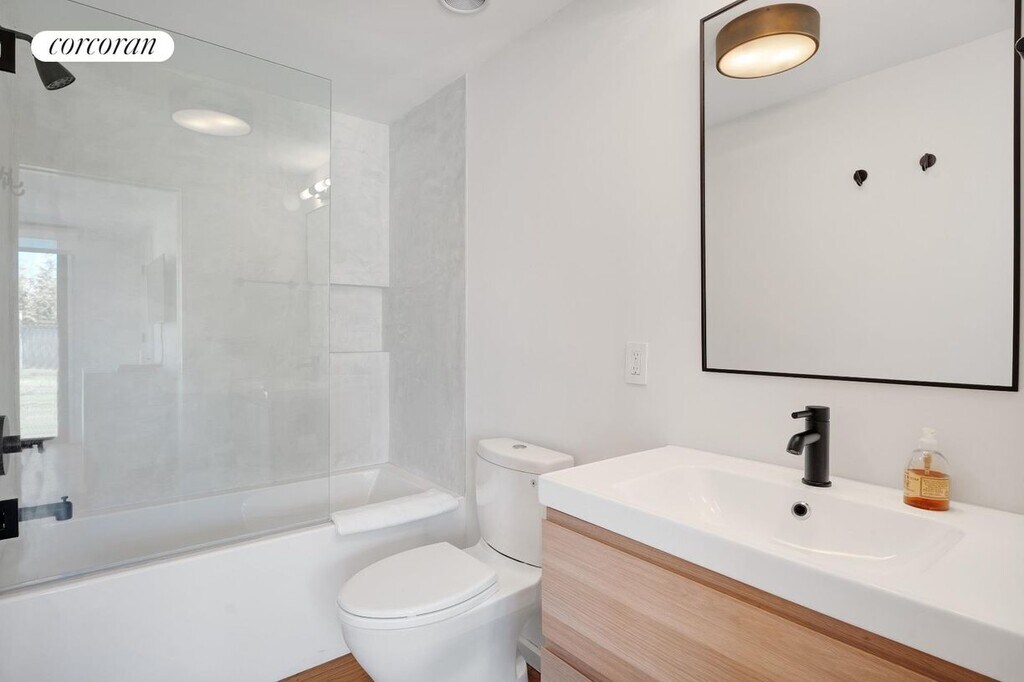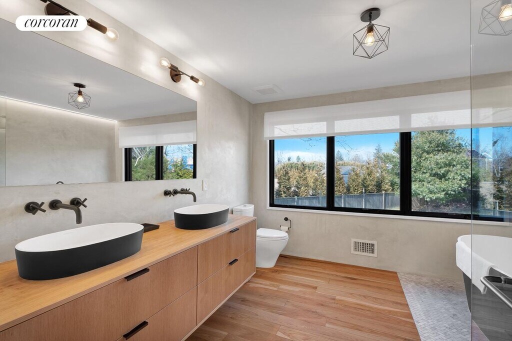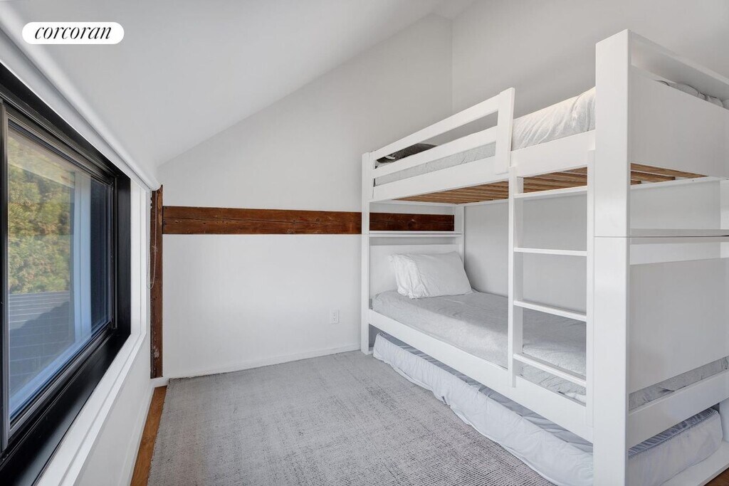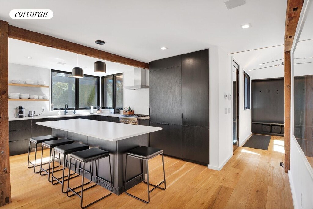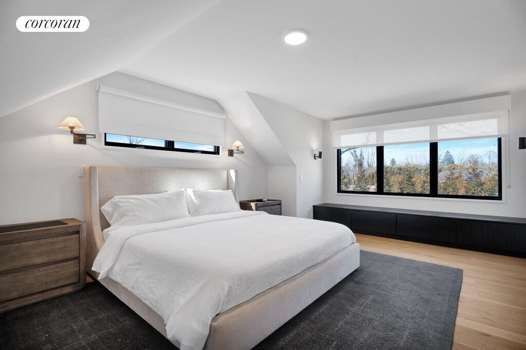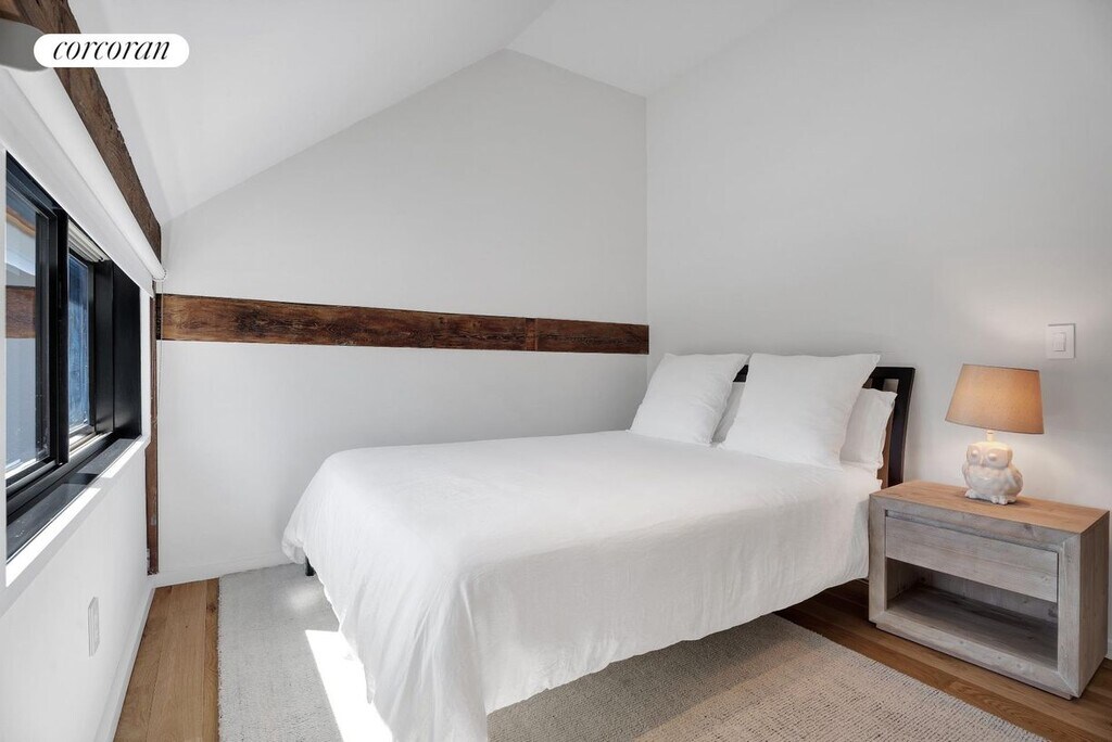 Now listed for off season and Summer 2026! A stunning modern home in close proximity to all that East Hampton Village offers - shops, restaurants, Jitney & train. This sleek barn style home is situated on a deep flag .52 acre lot, set far back off the street. The interior features a soaring two story great room with loft above. Beamed barn details and fireplace warm the common living spaces. An open concept great room/kitchen/dining area is perfect for entertaining. Multiple windows and doors allow for natural light to flood throughout the house. To the rear, the backyard is a perfect place to wind down and relax next to the heated pool, complete with an automatic safety cover. Backyard amenities include a large patio which gets full sun throughout the day. The house offers 5 generous bedrooms and 4.5 bathrooms; 2 en suite bedrooms are on the main level and 3 bedrooms are on the second level, which includes the primary suite. The finished lower level offers additional living space, featuring a cozy TV area and a recreational area that opens out to the backyard. Call for a viewing!