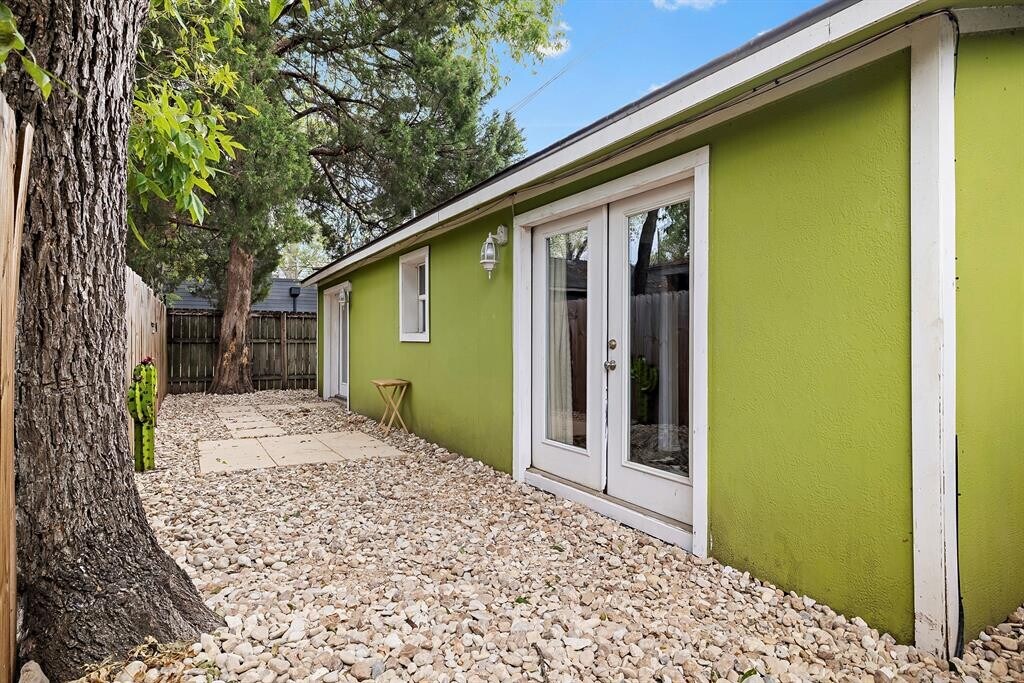 Located in Holly, just steps from Lady Bird Lake, this FULLY FURNISHED cozy 1-bedroom home comes with a vibrant decor and a vibe as bold as its green exterior. This is currently operated as a guest-favorite 5-star rated AirBnB but can be yours soon at half the price! This charming cottage is perfect to explore Austin's buzzing food, art, and music scene. Just a short walk or bike ride to all that East and Downtown Austin have to offer - restaurants, bars, groceries, shopping and more, this location is UNBEATABLE! Step into a vibrant, welcoming retreat designed with comfort and style in mind. Inside, natural light fills the open living area, highlighting unique decor and thoughtful touches throughout for a stay filled with charm and character. The living room is the perfect place to unwind, with a cozy sectional sofa (which coverts into a full-size bed), smart TV, and eclectic accents that capture East Austin’s laid-back vibe. The fully equipped kitchen offers everything you need to cook your favorite meals, complete with granite countertops and modern appliances. The bedroom features a plush queen bed and a calming ambiance to ensure a restful night’s sleep. The full bathroom is bright, clean, and stocked with fresh towels and toiletries. Outside, your private fenced backyard provides a quiet escape—ideal for sipping your morning coffee or soaking up Austin’s sunshine. For outdoor enthusiasts, Lady Bird Lake is just steps away, offering access to the Ann and Roy Butler Hike-and-Bike Trail, kayaking, and stunning lakeside views. If you have pets, they’ll love the outdoor space with a park right opposite to this house and steps away from the lake & trails! This home features its own driveway. Water and Water Water is INCLUDED! Schedule your showing today!