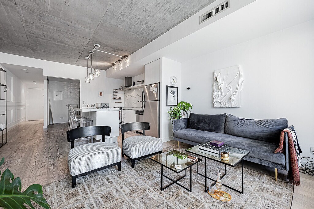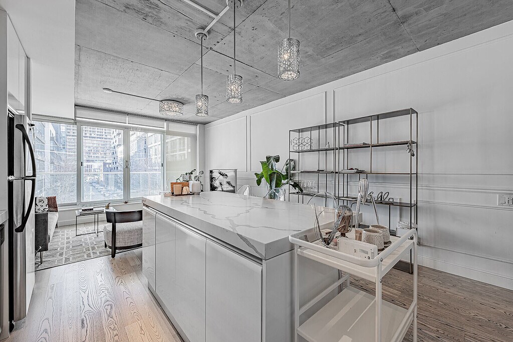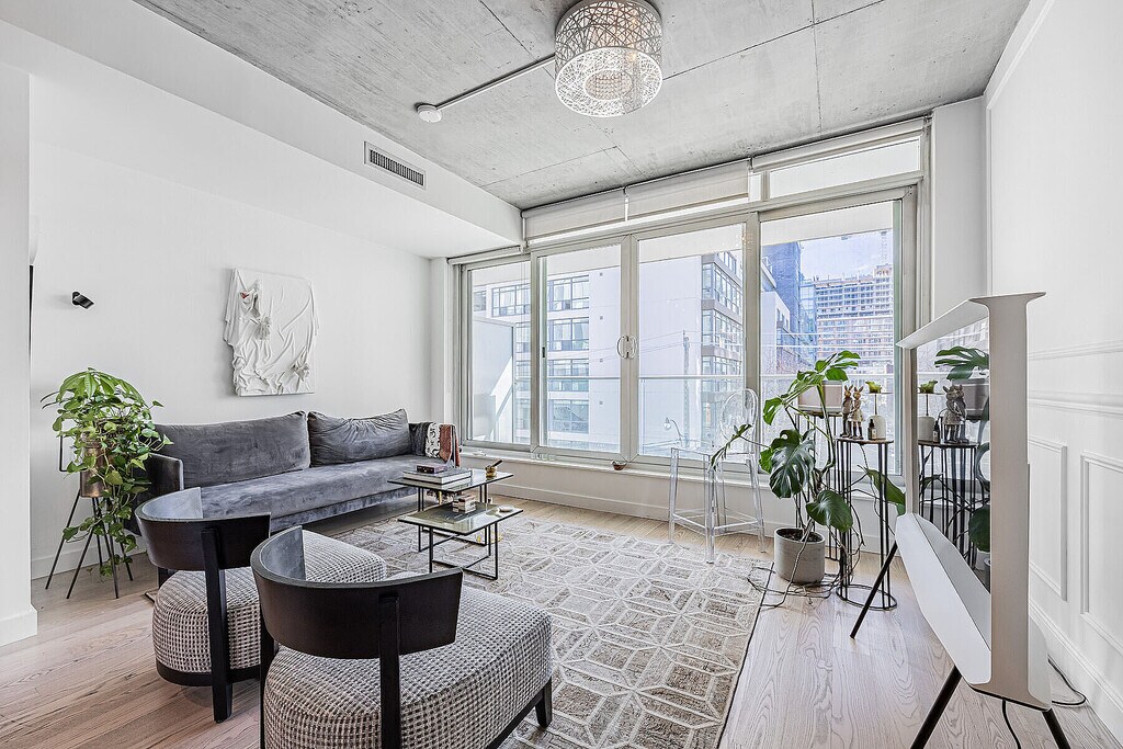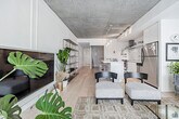 Experience luxury urban living at the highly coveted 75 Portland, where sophisticated design meets vibrant city life. This expansive loft, ideally located in the heart of King West Village, offers an unparalleled lifestyle surrounded by a wealth of neighborhood amenities. Perfectly furnished and tailored for those who appreciate refined living, this space is flooded with natural light. Boasting approximately 650 square feet of thoughtfully designed interiors, plus a spacious balcony, the open-concept layout is enhanced by sleek, modern finishes. Perfectly situated and within walking distance of public transit, great restaurants, fitness studios, parks, and all sought-after conveniences. *Partially furnished* as seen in photos. The bed and couch are excluded. Landlord open to a 6-month lease.