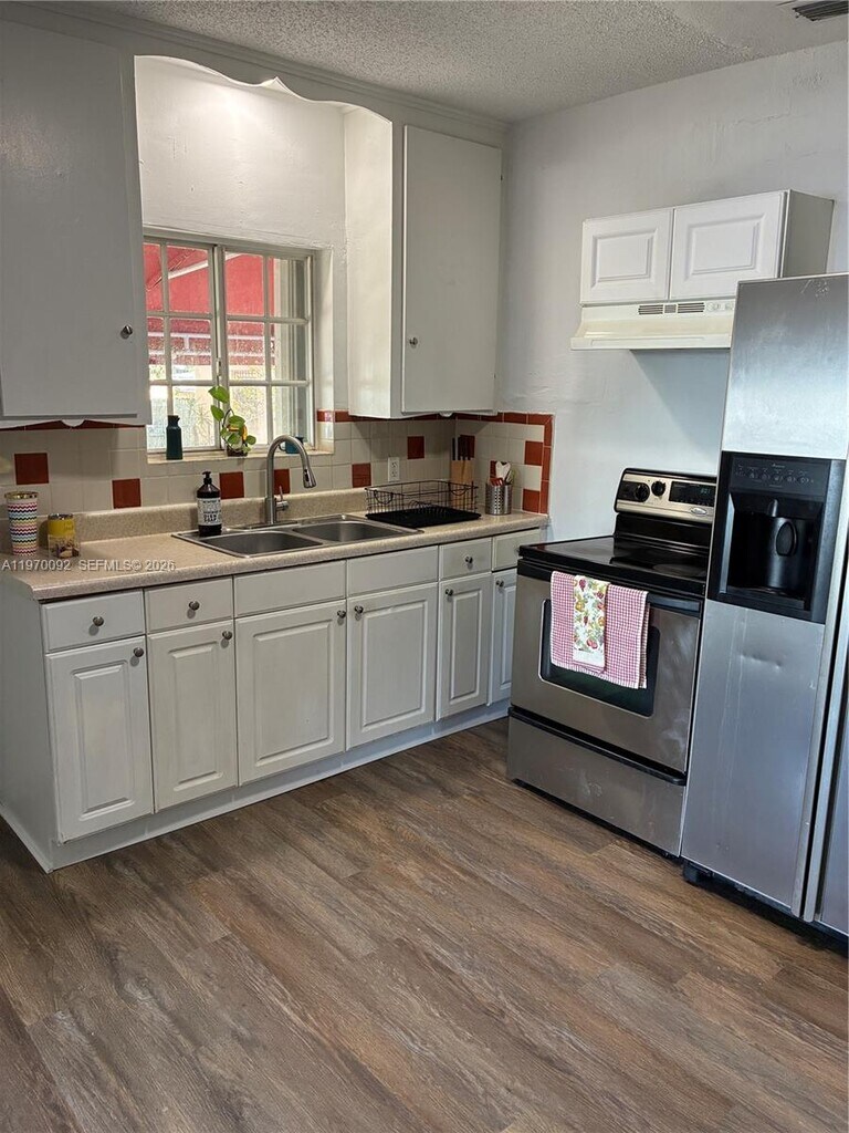 Remodeled large 3 bedroom, 2 full baths unit that feels like a house. Large cozy eat-in kitchen. New floor throughout and new resurfaced bathtubs. Ample walking closets in each room, lots of natural light. Perfect central A/C. Hurricane accordion shutters in each window. Three assigned parking spaces. Perfect location, a few steps from Biscayne Boulevard, Miami Shores, and El Portal. Close to restaurants, banks, Publix, Aldi, and more. Water & garbage is included in the rent. Fast approval. MLS # A11970092