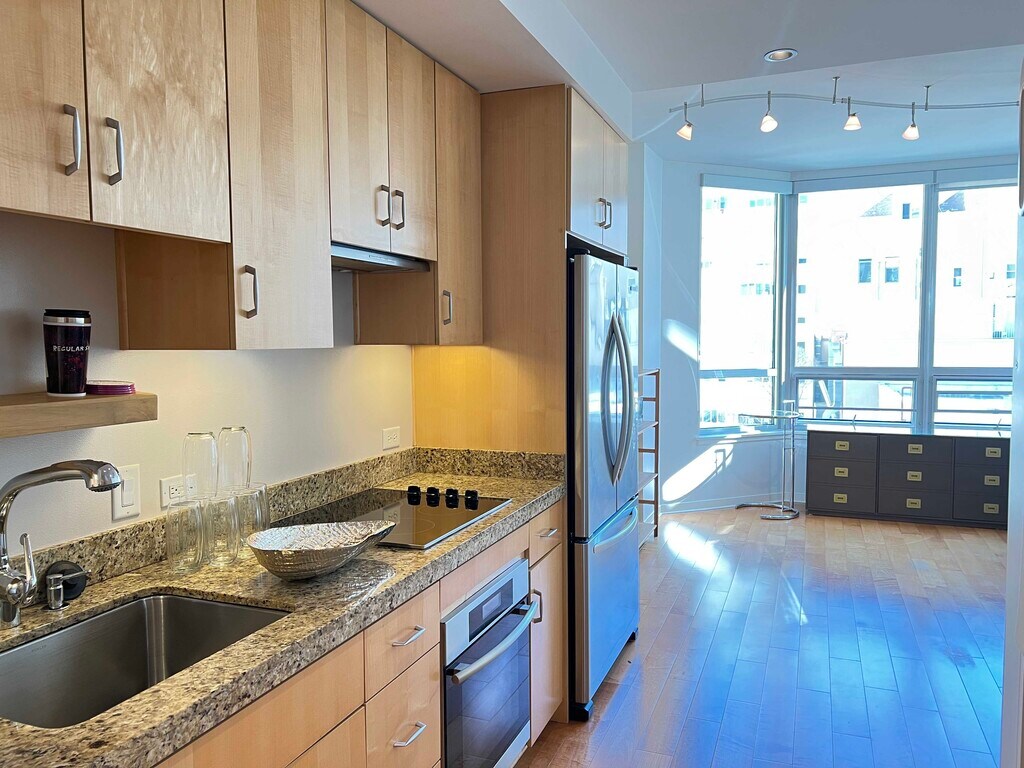 750 Van Ness Ave. #402, San Francisco, CA 94102Please contact Thuan for showings @ show contact info or thuan.h.duong @ exp realty .comExceptional conveniently located in the heart of the Performing Art District Studio Condo with large windows bring in more natural light. The modern setting is perfect for the urban dweller or for a pied-a-terre seeker who likes to be amidst city living. This stylishly furnished offers a comfortable living space with a Twin-over-Bunk bed set, sofa, dining table set, storage cabinet, extra shelvings, and flat-screen TV. The kitchen area features Stainless Steal Refrigerator, Freezer, Electric Stove &; Cooktop, Dishwasher, and Granite Counter. This unit also has W/D in the unit, Tile &; Hardwood Flooring, and extra large storage. Minutes walk to Hayes Valley, San Francisco's Cultural Center, SF Symphony, Ballet &; Opera, Union Square, Shopping area, Transportation such as Muni, Bart, and easy access to freeway.Features:-Spacious and bright 0BR/1BA with street view.-Enlarge windows bring in ample natural light &; open living space-Exceptional modern city living Studio with all appliancesStylist Twin-over-Bunk bed set &; a dining table setPlenty of cabinets &; shelvings and extra large storage, and bike storage-Comfortably bathroom space with a bathtub and beautiful light fixtures-Tastefully remodeled in 2019 kitchen w/ SS appliances, dishwasher, and microwave-Hardwood flooring throughout the living area-In unit W/D-Open space Roof Top with beautiful city sky view-Beautifully landscaping CourtyardIn the neighborhood-Prime location with just steps away from the heart of the Performing Art District, Hays Valley, and Parks.-Short walk to San Francisco Cultural Center, SF Symphony, Ballet &; Opera, Union Square &; Shopping Center.-Conveniently access to Freeway 101-Accessible to most transportation like Bart, Muni, Bus…-Minutes away from many local High-end Restaurants, Bars, Clubs, Coffee Shops, Boba Shop, Hair Salon…Lease Term:-Minimum 1 year lease, furnished/partial furnished-Move-in: NOW-Monthly rent: $2,375/mo-No Parking-Deposit: 1.5x Monthly Rent-Tenant set up &; pay for PG&;E, Cable TV, and Internet-Landlord pays HOA including trash, water, and sewer-Pets welcome- limited 1-HOA move-in fee $250 (if applicable)