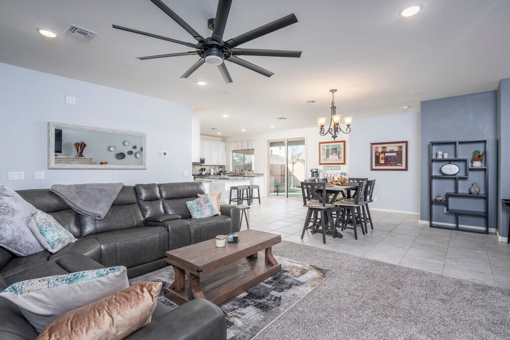Fully furnished 3-bedroom, 2-bath home with 2,007 sq ft located in Casa Grande. This spacious property offers a functional layout with comfortable living areas, a well-equipped kitchen, and thoughtfully furnished bedrooms designed for extended stays. The home features an oversized RV garage—perfect for additional storage, larger vehicles, or recreational equipment—along with a standard garage and ample driveway space. Inside, you'll find a bright open-concept living area, a fully stocked kitchen with modern appliances, and a primary suite with a private bathroom and generous closet space. All bedrooms are furnished and move-in ready, making this an ideal option for traveling professionals, corporate housing, or mid-term stays. Located in a quiet residential neighborhood with convenient access to I-10, shopping, dining, and major employers in Casa Grande and surrounding areas. All utilities and furnishings included. Flexible lease terms available.