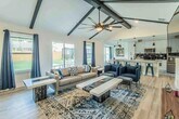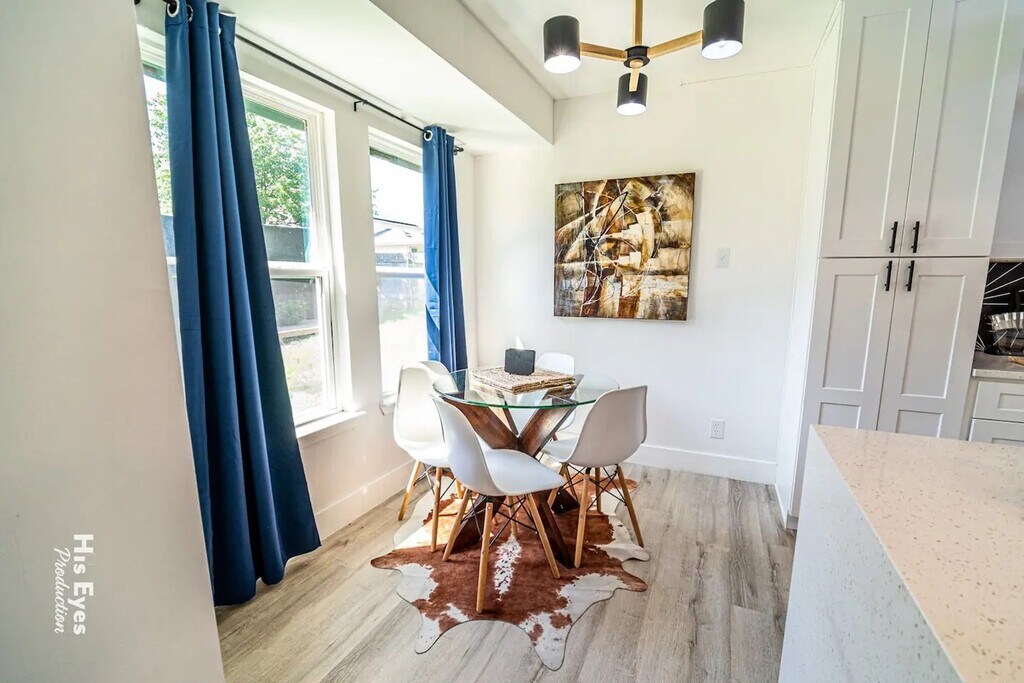 Step into a fully furnished, freshly remodeled luxury residence designed for comfort, flexibility, and effortless living. This expansive 5-bedroom, 3-bath home offers the perfect balance between upscale style and everyday functionality—ideal for families, professionals, or groups seeking a high-end extended stay in Austin. Every detail has been thoughtfully curated, with stylish furnishings throughout so you can move in seamlessly without the hassle of setup. From the moment you walk in, you’re welcomed by bright, open living spaces featuring a large, inviting sofa, a statement dining area perfect for gatherings, and a sleek flat-screen TV for relaxing evenings. The fully equipped kitchen includes modern appliances, cookware, dishes, and a Keurig coffee station—ready for everything from quick mornings to full home-cooked meals. Step outside and enjoy a spacious backyard with patio furniture, creating a private setting for entertaining or unwinding. A dedicated driveway provides convenient parking, and the pet-friendly setup ensures every member of the household feels at home. Perfectly located just 10–15 minutes from UT Austin, Moody Amphitheater, and key city attractions, this home offers both privacy and accessibility—making it an ideal choice for those who want a turnkey Austin living experience.