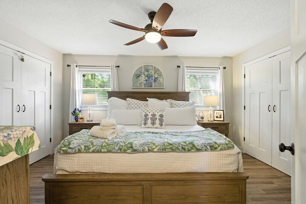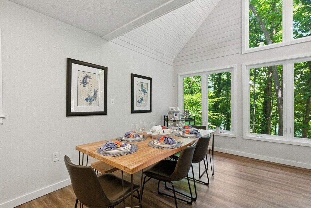 Welcome to The Holiday House on Lake Hartwell, a cozy 3-bedroom lakefront retreat offering stunning water views and year-round deep water access. Perfect for families, friends, or game-day getaways, this home provides everything you need to enjoy lake life at its best. The Holiday House features a well-stocked kitchen with a drip coffee maker, French press, Keurig, and Nespresso Coffee Maker, along with coffee bar syrups, a hot water kettle, crockpot, blender, hand mixer, pots, trays, spices, and an ice maker. Relax in the primary suite with a king bed, or choose from the other bedrooms with queen and twin beds, ensuring comfortable sleeping arrangements for all guests. While pets are not allowed at the property, guests can enjoy the private dock with uncovered storage and tie-up space for boats, two kayaks with paddles, and ample space for two boat trailers. The campground next door offers additional amenities for a small fee. Conveniently located just 8 minutes from I-85, The Holiday House is 22 minutes from Clemson University and 20 minutes from Anderson University. Grocery stores are a mere 5 minutes away, and the nearby campground offers access to a swimming pool, beach, putt-putt, basketball, and boat launch for a small fee. Explore local dining options such as Sullivan's Metropolitan Grill, AJ's Bar and Grill, and Tilly's Tiki Bar & Grill, all within a short drive. Park by the storage garage to avoid falling tree limbs, and be cautious of the tree hazard near the dock. Avoid running the washer/dryer between 3–6 PM to manage power usage. No fireworks are allowed, and exterior security cameras are located at the driveway, front door, and dock. Quiet hours are from 10 pm to 7 am to respect the neighbors. Check-in instructions will be provided with a code, and a car is recommended for your stay. A remote work-friendly environment is provided with a 65” smart TV and various games, books, and puzzles for entertainment during downtime. Be mindful of the local wildlife, including "Harry the Heron" and other critters near the water and woods. Exercise caution around the lake property due to uneven surfaces, slopes, and steps, especially with younger children. Swim at your own risk, as there is no lifeguard on duty, and avoid diving near the dock due to an underwater tree.