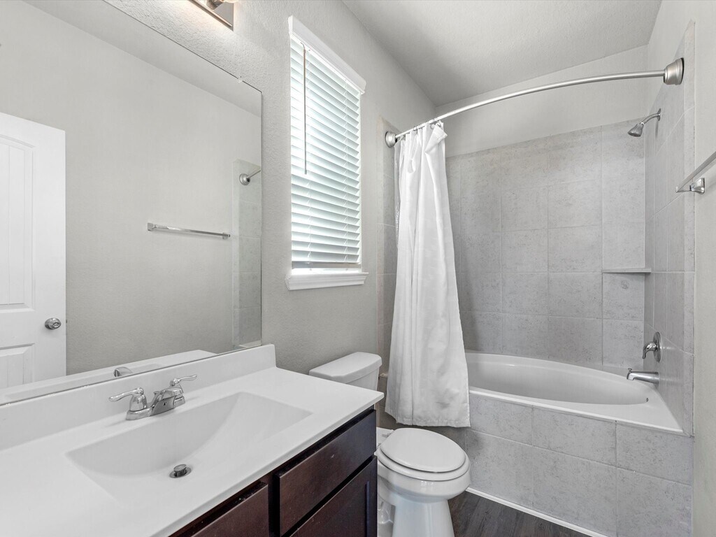 Welcome to this beautifully maintained 4-bedroom,2-bath home situated on a desirable corner lot in the Merrylands subdivision. The primary bedroom is conveniently located downstairs,offering privacy and comfort,while all secondary bedrooms are upstairs along with a spacious bonus game room—perfect for entertaining,a home office,or a play area. The home features no carpet throughout,providing a clean,modern look and easy maintenance. Enjoy an unbeatable location with major shopping just steps away—Target and H-E-B are right around the corner,along with dining and everyday conveniences. With its prime location,functional layout,and move-in-ready appeal,this home is a must-see. Call or text for all inquiries MLS# 95235406