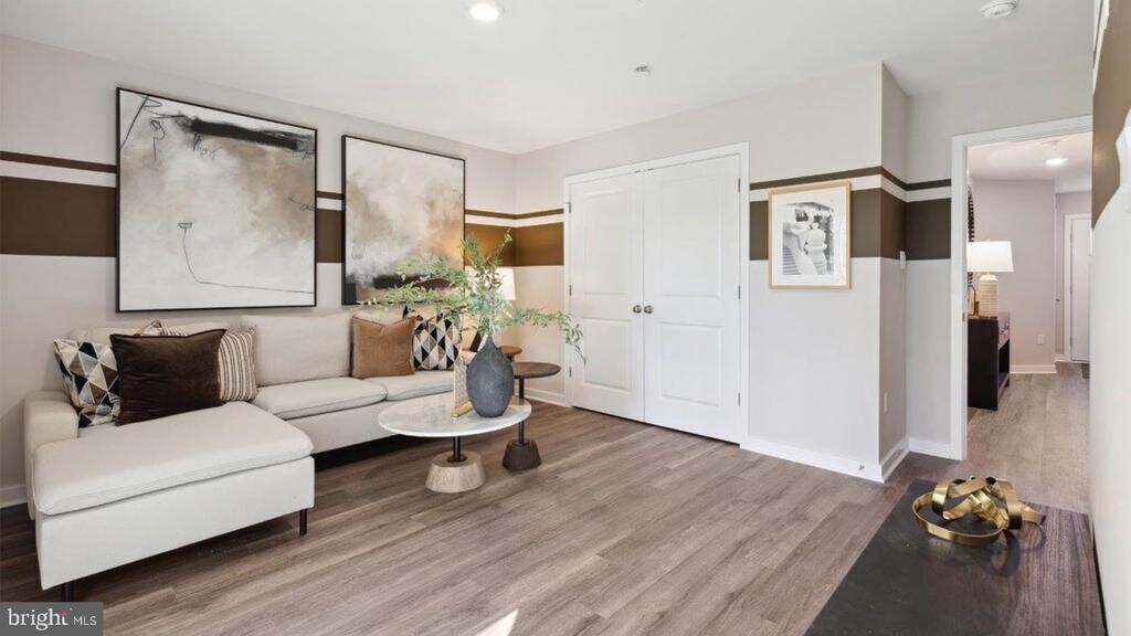 New construction 3-level townhome with 1-car garage and almost 2000 Sq.Ft in the beautiful Calm Retreat community in Brandywine, directly across from Brandywine Crossing shopping center with Target, Costco, Safeway, Xscape Theatres, and many restaurants. The entry level offers a generous foyer with coat closet, access to a 1-car garage, plus a driveway for an additional car. This level also includes a flex room with a full bath that can serve as a guest suite, recreation room or home office, leading to a fenced backyard. The main floor features a spacious living room with pre-wired TV outlet for a clean setup, a dining area and a beautiful white kitchen with quartz counter tops and stainless steel appliances, that opens to the deck. A powder room completes this level. Upstairs offers two secondary bedrooms, a full hall bath, laundry closet, linen closet and an owner’s suite with walk-in closet and en suite bath. Good to Know: Trex deck, luxury vinyl plank flooring throughout (no carpet), cordless blinds on all windows, over 15 visitor parking spaces directly across the home, and garage equipped with electric outlet and automatic opener. The Retreat community includes a clubhouse, gathering rooms, and gym. Closing scheduled for 10/24. Showings begin Saturday 10/25. Open house Sunday 10/26, 2–3 PM. Offer deadline Monday 10/27 by 12 PM. Available for rent upon settlement. Pictures of Model Home!