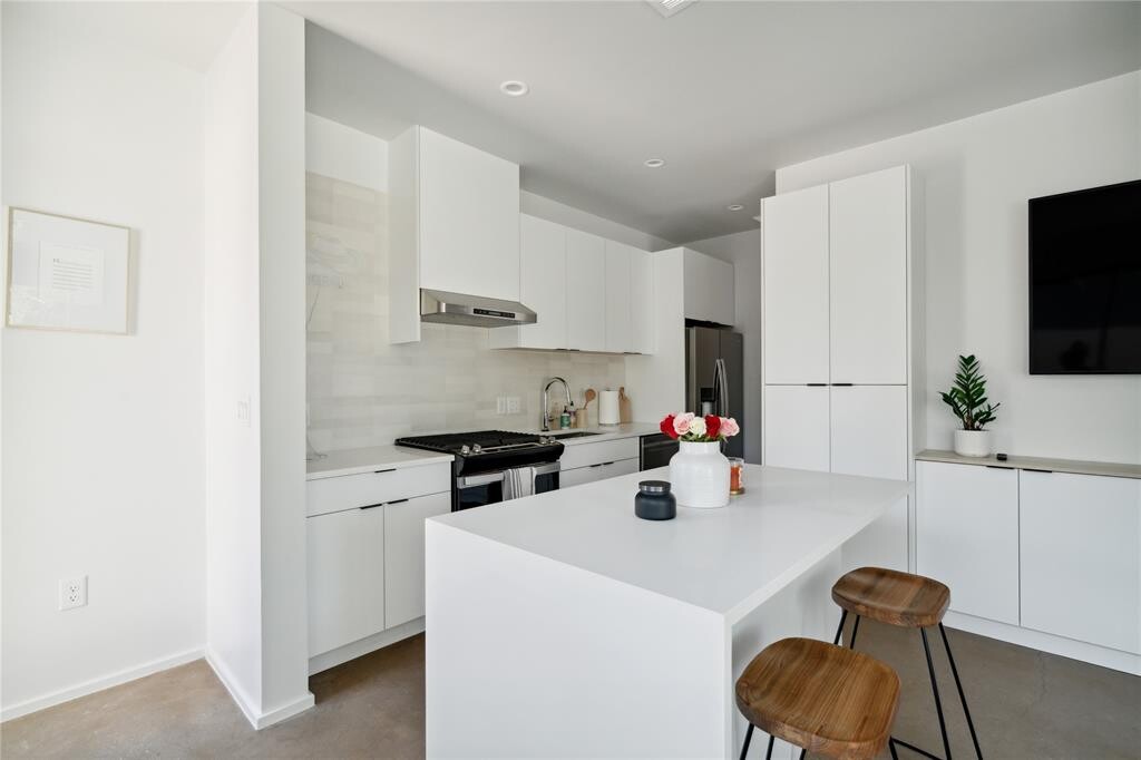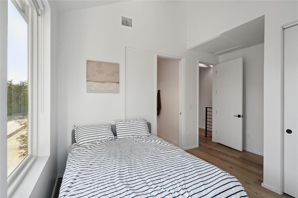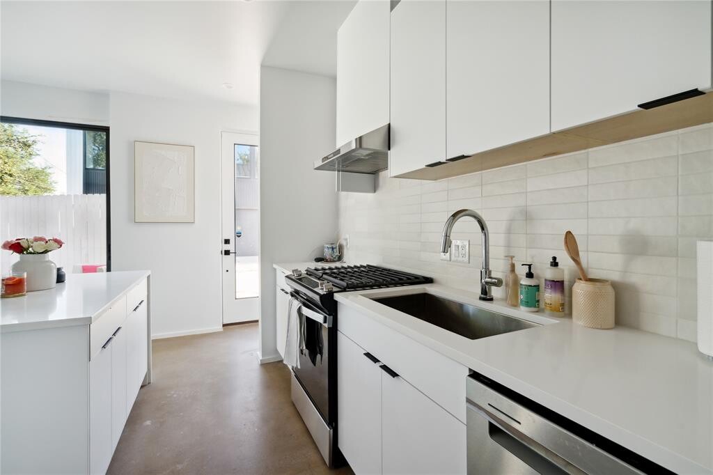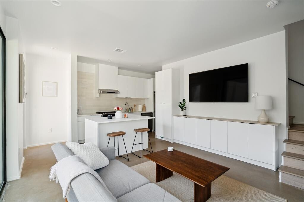 Welcome to modern architectural living in south central Austin! This residence was designed by renowned local architect, North Arrow Studio, known for creating modern spaces with unique lighting, lines, and incorporating elements that seamlessly blend the interior and exterior. This home features an open concept living area with large windows, two spacious bedrooms, two and a half bathrooms, and huge private yard graced by a large oak tree. The attached garage parking space provides ample room for storage and ease of living. Come tour this gorgeous home today! MLS ID 3886365
