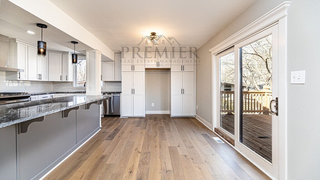 7509 Lamar Drive Prairie View KS 66208 Stunning - 4 bed / 3 bath house Rent $3200 / Deposit $3200 Use this like to schedule a self showing today: Don't miss out on this spacious home in the historic Prairie Village area. The huge open living room flow right into the updated and modern kitchen. Fully equipped kitchen with all stainless steel appliances, gas cooktop stove with center griddle. Beautiful black counter tops with tons of cabinet space. This one sports a double pantry with rollout shelves. Massive backyard is great for someone with a green thumb and loves gardening. Large shed with shingle top roof, is great for out door storage. There is also a well kept unfinished basement for extra indoor storage. Main floor has an optional office/bedroom as well. Luxurious white marble in all bathrooms. One full bath on the the main floor and two full baths upstairs, along with upstairs laundry right next to main bedroom. Main bedroom has its own private balcony! As well as a panoramic shower with his and hers sinks. The property is managed by Premier Real Estate Management Inc and IS NOT involved with any individual and we will NEVER ask you to wire any money. Management checks: - Credit must be 600+ - Total household income - must make 3X the rent - net income - Previous rental - no landlord judgments or evictions - Criminal background is done case by case basis - No Housing Vouchers Pets- one time none refundable pet fee of $450 for one $600 for two Call for more information at Ext. 100 TO APPLY and/or see all of our available properties- Visit Click on the RENTERS tab, then FIND RENTAL HOME; Filter search to show all properties LOW TO HIGH. Click on address. $40 Application fee per adult occupant.