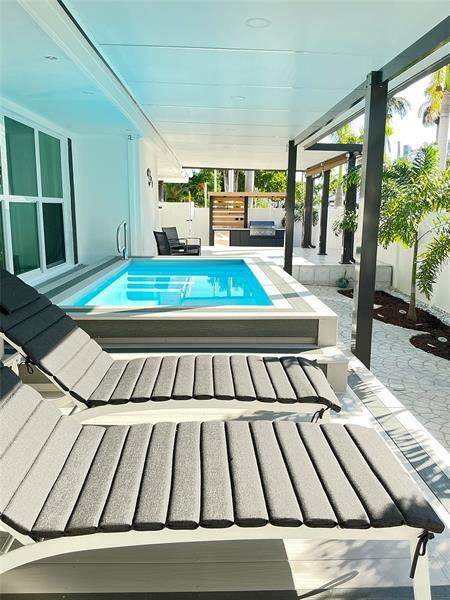 Walk to award winning pristine beach from this stunning 3 Bedroom 2 Bath in the historic Hollywood Lakes neighborhood. Completely remodeled with beautiful finishes throughout. Gorgeous kitchen with stone counters and backsplash, newer appliances and high top table dining area. Split bedroom floor plan, walk in closet in primary and beautifully updated baths. Picture windows in living area to your private topical retreat with outdoor summer kitchen and brand new oversized jet spa. Direct ocean access community boat ramp just yards away. Corner lot. Minutes to downtown Hollywood and Ft Lauderdale airport, restaurants, nightlife and casinos. Small pets ok, partially furnished. Owners looking for right tenants to call this home.